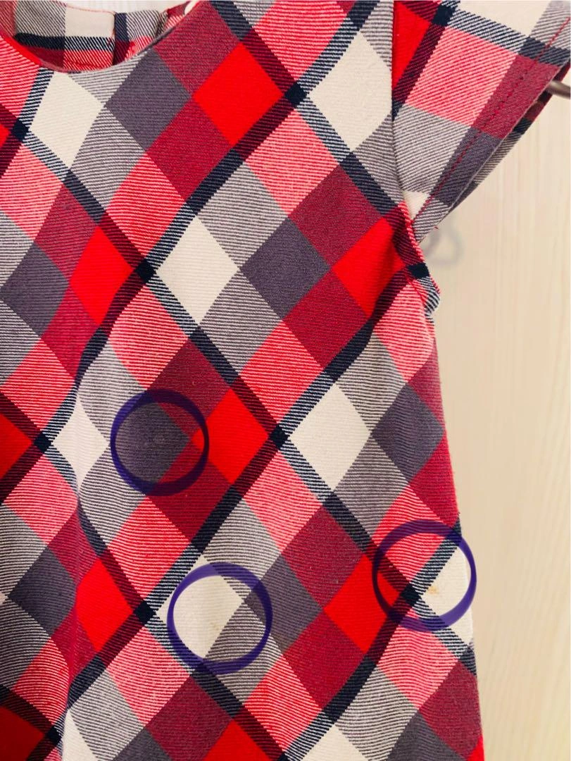 H&Mのワンピースです。 【クリーニングタグ付き】 サイズは5-6y(歳)、表記は116㎝です。 赤地×黒×ベージュのチェック柄。 ポリエステル63% レーヨン35% ポリウレタン2% フォーマルでも普段使いでも着れる洋服です。 腰の部分で切り替わりがあり、ワンピースながらスカートと合わせているようなシルエットです。 ※一部近づいて見るとわかる程度のシミとホツレがあります。写真に掲載しますのでご確認ください。 膝上丈 ゆるやか台形シルエット 衿元タック 飾りリボン 後ボタン3箇所 記名無し 発表会や誕生日会などにお勧めです。 《ランク》A 【S】 新品・未使用 【SA】新品に近い状態 【A】 使用感の少ない美品 【AB】多少の使用感はあるが良品 【B】 使用感のある一般的な中古品 【BC】多少のキズや汚れがある 【C】 目立つキズや汚れがある 【D】 ジャンク ご希望の方はお気軽にご連絡ください。