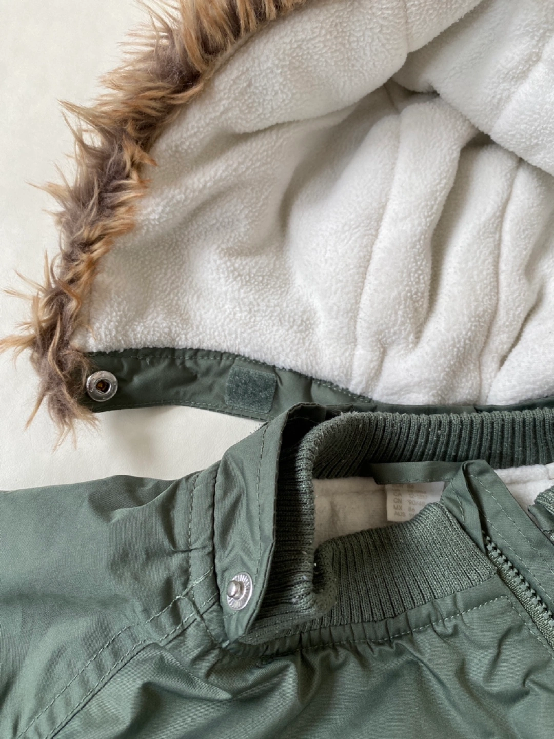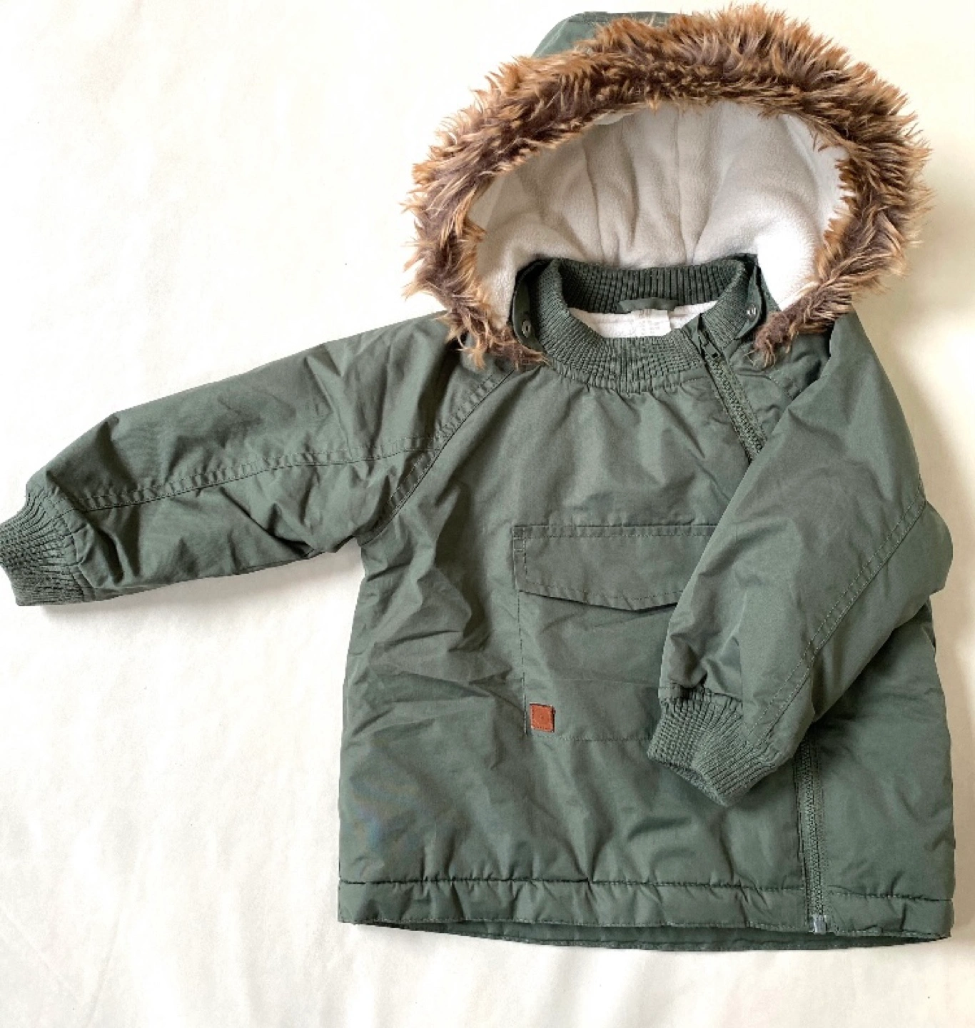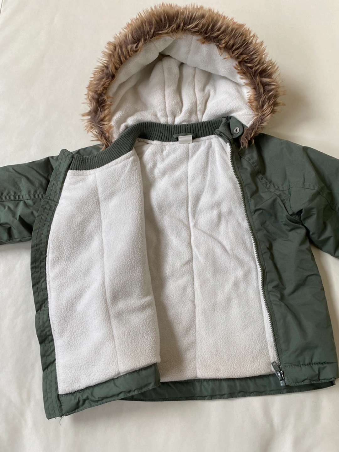 ワンシーズン着せて自宅保管していました。 とても暖かそうで真冬でも公園遊びはこれを着せていました。フードも取り外し可能ですので保育園でも着せて頂けます。タグにお名前シールの剥がし跡があり多少ベタつきがあります。 新品ではないのでそれなりに着用感、毛玉がありますのでご了承ください。 受け渡し場所は三軒茶屋、駒沢公園、豪徳寺駅近辺でも可能ですのでご連絡ください。