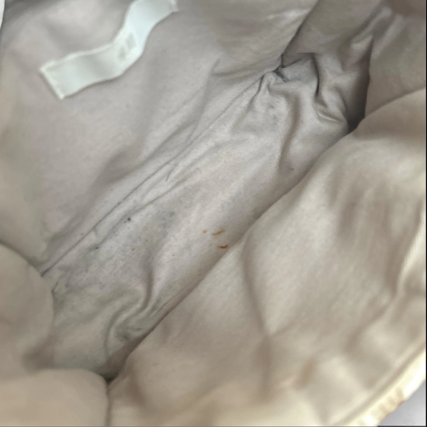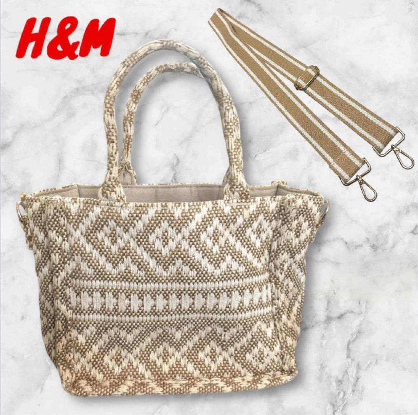 H&M ミニトートバッグ ハンドバッグ ショルダーバッグ ☆カラー…ベージュ×ホワイト ☆ショルダーにもなるベルト付き ショルダーベルトは元々の汚れが1カ所ありますが、未使用のまま袋に入れて保管。 多少の使用感、変色?あります。 【デザイン】 このトートバッグは、ベージュとホワイトの幾何学模様が特徴的で、どんなコーディネートにも合わせやすいデザインです。 【ブランド】 H&Mの製品で、ファッション性と実用性を兼ね備えています。 他サイトでも出品中です。 他で売れた場合、急に削除しますので、ご了承ください
