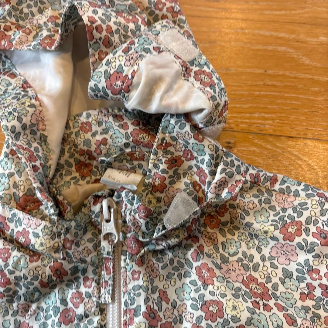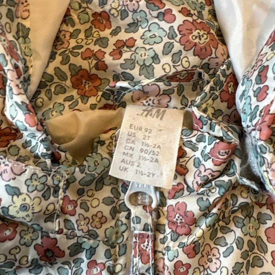 【ブランド】H&M 【サイズ】EUR 92 / US 1.5〜2Y(日本サイズ 約90〜95cm) 【アイテム】花柄フード付き ジャケット(薄手アウター・ウィンドブレーカー) 【カラー】ホワイトベース × ピンク・グリーン系の小花柄 【素材】ポリエステル(軽量で持ち運びしやすい素材) 【状態】目立った汚れや破れはなく、全体的にきれいな状態です。中古品であることをご理解ください。 軽く羽織れるタイプの薄手ジャケットです。 フードはマジックテープで取り外し可能なので、用途や気候に合わせて使えます。 保育園では「フードなし」を指定されることが多いですが、このジャケットはフードが取れるため、園にも持って行きやすいです。 ちょっとした風除けや肌寒い時に便利で、コンパクトにたためるのでお出かけにもおすすめです。 ✨ポイント •花柄がかわいく、コーディネートのアクセントに♪ •春・秋の軽いアウターにぴったり。 •フードがマジックテープで着脱可能 → 保育園にも◎ •H&Mの人気デザイン。 【注意事項】 自宅保管のため、細かい見落としがある場合もございます。中古品にご理解いただける方のみご購入ください。
