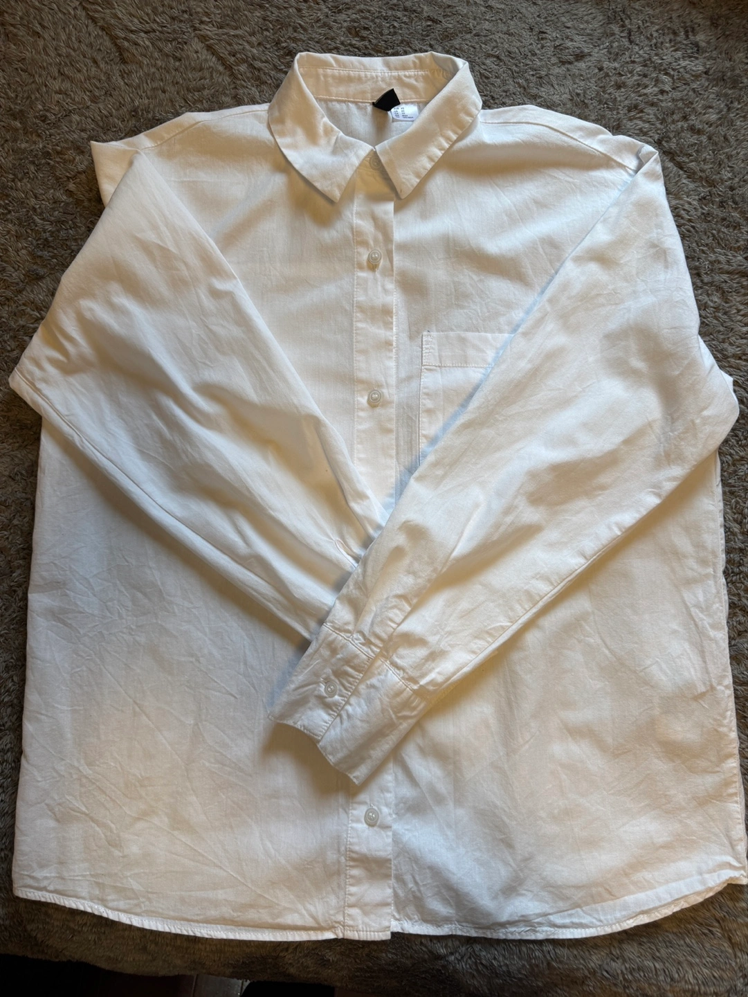 100%コットンのホワイト長袖シャツ、シンプルで使いやすいデザイン。 - ブランド: H&M - モデル名: DIVIDED - 素材: 100% コットン - サイズ: XS - カラー: ホワイト - スタイル: 長袖シャツ ご覧いただきありがとうございます。 中古品ですので、ご理解ある方のご購入をお願いいたします。 日時によってはファミリーマート以外でのお渡しも可能です。