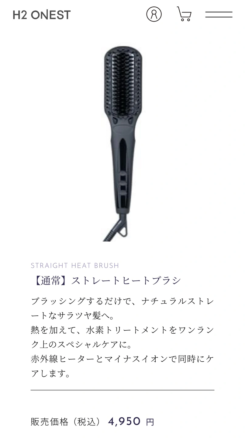 10回以内の使用です。 箱、取扱説明書、袋あり。 #STRAIGHT HEAT BRUSH 【通常】ストレートヒートブラシ ブラッシングするだけで、ナチュラルストレ ートなサラツヤ髪へ。 熱を加えて、水素トリートメントをワンランク上のスペシャルケアに。 赤外線ヒーターとマイナスイオンで同時にケアします。 販売価格(税込) 4,950円 スエードタッチで傷がつきやすいため、やや使用感ございますので、ご理解ある方のご購入をお願いいたします。 日時によってはファミリーマート以外でも対応可能です!