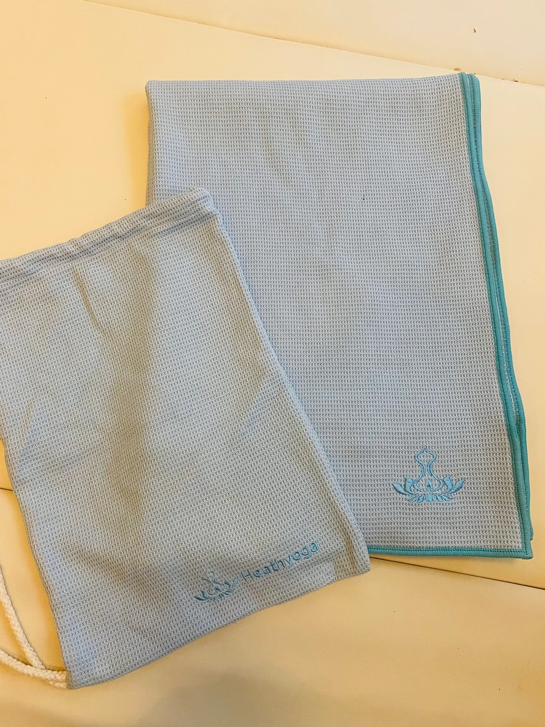 Heathyogaのヨガマットタオル 使用の機会がなくなり、自宅に保管しておりました。一部、インク汚れがあります。裏側上下にポケットがあり、ヨガマットを入れ、さらに滑らないように固定でき、便利です。中古品ですので、ご理解ある方のみお願いいたします。ポーチあり 【注意】 ・2枚目写真参照 インク汚れのようなものあり 【高機能メッシュ素材】 このタオルは、通気性に優れたメッシュ生地で作られており、汗を素早く吸収し、乾燥も早いです。トレーニングやヨガに最適です。 【便利なサイズ】 大きなタオルと小さなポーチのセットで、持ち運びや収納が簡単です。ジムやスタジオでの使用にぴったりです。 【スタイリッシュなデザイン】 水色のシンプルでスタイリッシュなデザ インに、ロゴが施されています。見た目にもこだわりたい方におすすめです。 - 色: 水色 - 素材: メッシュ生地 - サイズ: 大(タオル)と小(ポーチ) - デザイン: ロゴ入り - 縁取り: 青色の縁取り - テクスチャ: 網目状のテクスチャ ご覧いただきありがとうございます。