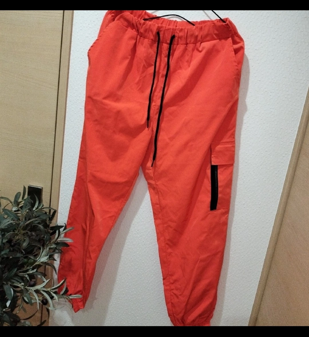 スピンズ メンズ カーゴパンツ 迷彩柄 オレンジ