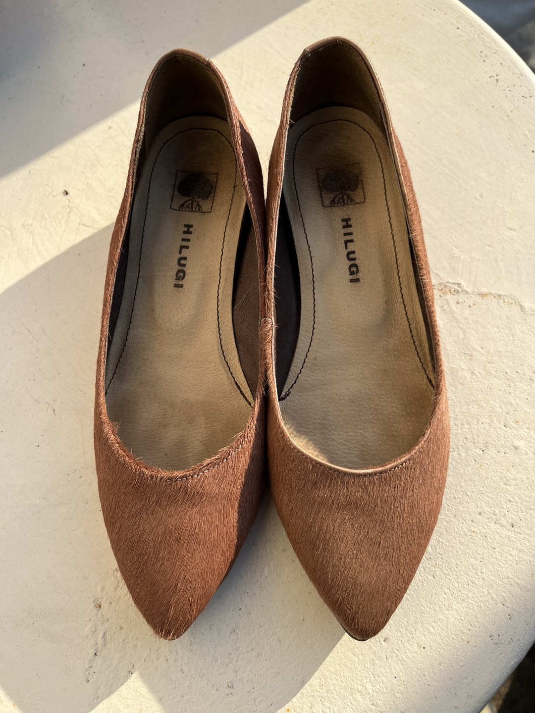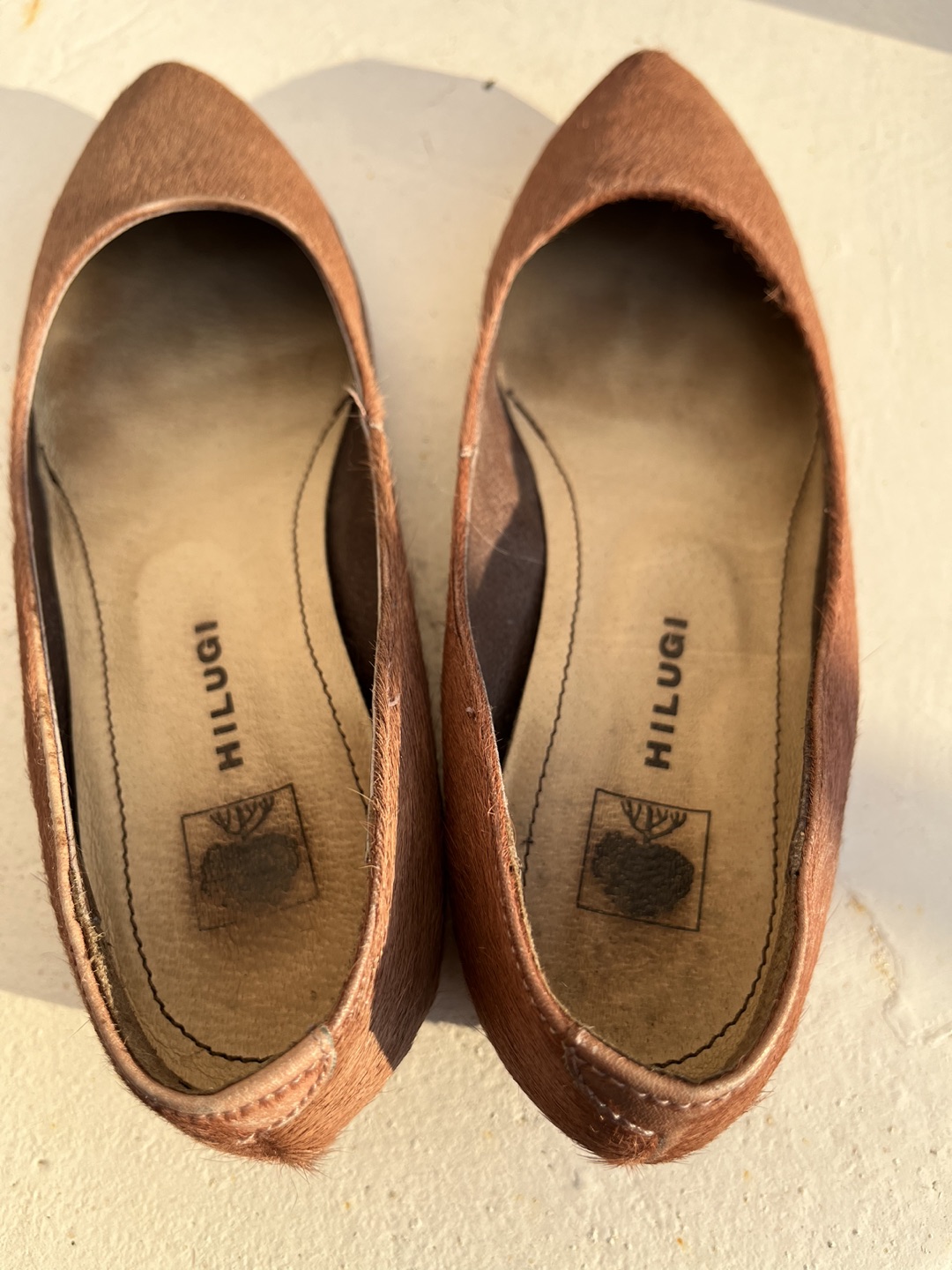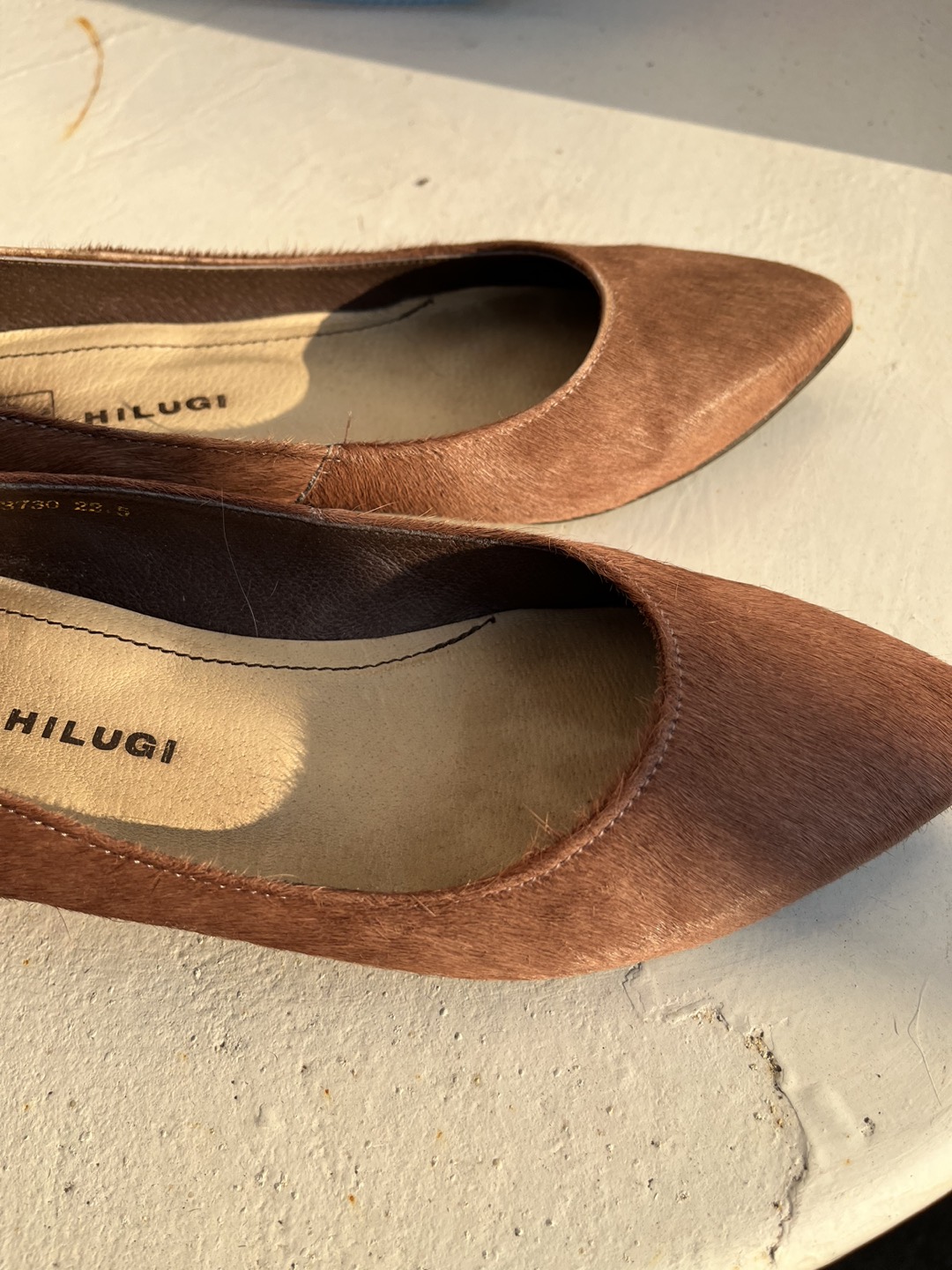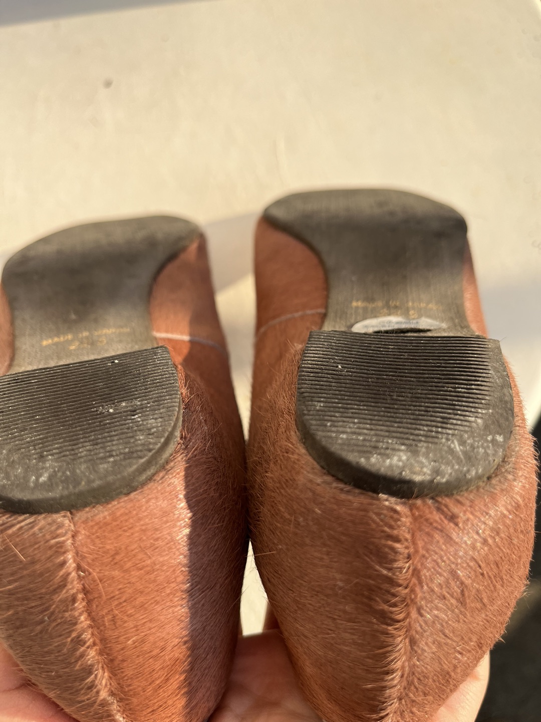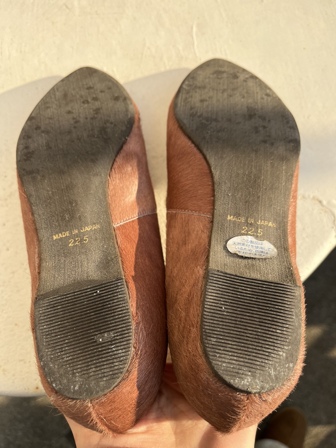 あたたかさHIRUGI の本革パンプスです。 着用回数は少ないですが、 着用感が出てしまいました。 落ち着いた毛皮なので、オシャレに履いて頂けるかと思いますが、 自然の物なので、色の出方に多少差があります。