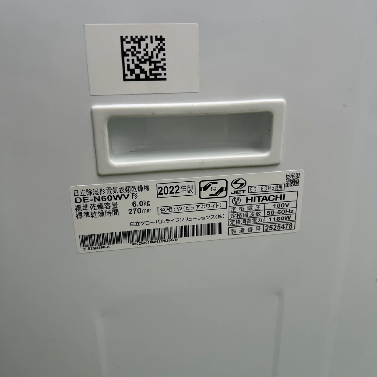 横浜市内であればプラス1,000円で配達可能です! 予定が合えば多少離れたエリアでも配達可能です。 ※その他地域はコメントにてご相談くださいませ! HITACHI 日立 衣類乾燥機 6kg DE-N60WV 2022年製 カラー:ホワイト 白 本体のみ 【商品概要】 ●エアハッチで、すばやく、やさしく乾燥 ●ヒーター&風乾燥の2way乾燥 衣類に合わせて乾燥方式が選べる。熱に弱いデリケートな衣類の乾燥にはヒーターを使わない「風乾燥」。 ●仕上げコース 生乾きや湿っぽい衣類を仕上げ乾燥するときに。 サイズ(約):幅630×奥516×高670mm 容量:6kg ●基本色:白 ●色名称:ピュアホワイト ●商品生産国:日本 ●本体高さ[mm]:670 ●本体幅[mm]:630 ●本体奥行[mm]:516 ●本体質量[kg]:約26 ●衣類乾燥機・方式:ノーダクト・除湿 ●衣類乾燥機・設置形態:ユニットタイプ ●湿度センサー:有 ●電源オートオフ:有 ●消費電力[W]:1,180 ●衣類乾燥機・容量[kg]:6.0 出品直前に動作確認を兼ねて一度使用しました。 よく乾きました。 使用に伴う、傷や汚れはあるかと思いますが、まだまだ使用可能です。 写真にてご確認く ださいませ。 中古品をご理解の上ご検討下さいませ!