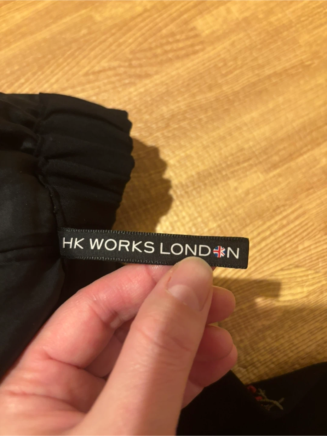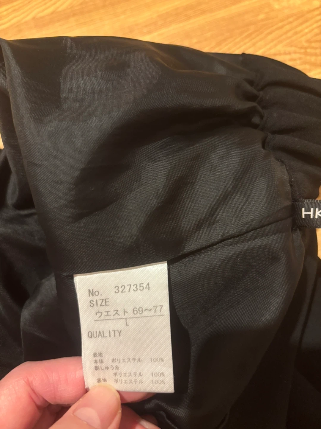 HK WORKS LONDONのスカートです。 【情報】 ブランド:エイチケーワークスロンドン サイズ:L(ウエスト69〜77cm) カラー:ブラック ウエスト部分はゴムです 裏地付いています 傷や汚れはありません 受け渡し場所 北綾瀬駅、亀有駅