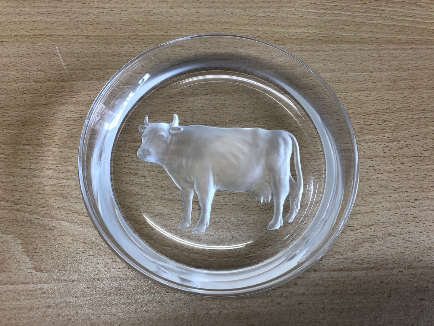 【牝牛・雄牛 セット】 未使用の🐮牛さんガラス皿。 ボウルのサイズは口径だいたい13.5センチ、高さがだいたい2.5センチです。 箱はありませんが… 飾っていたので… 器は、特に目立つ傷みはありませんが、 経年保管のため、多少のスレや汚れはご了承ください。 注: 自宅マンションにて保管して いました。細かい汚れ等の見落としはご容赦下さいませ。 また、特に状態に敏感な方のご入札はお控え下さい。 光の当たり方によって写真と実物のカラーが多少異なる場合がございますことをご理解の程よろしくお願いいたします。 ご不明点等ございましたらご連絡ください。 日時、平日AM〜15:00 (応相談) 受け渡し場所は、🏥関東中央病院前のセブンイレブン駐車場 希望ですが… 取引き場所の変更可能です。 関東中央病院周辺、千歳船橋駅周辺、経堂駅周辺、用賀駅周辺、農大、馬事公苑周辺、サミット砧店などが行きやすいです。 千歳船橋駅、経堂駅、用賀駅は改札越しのお取引可能です。