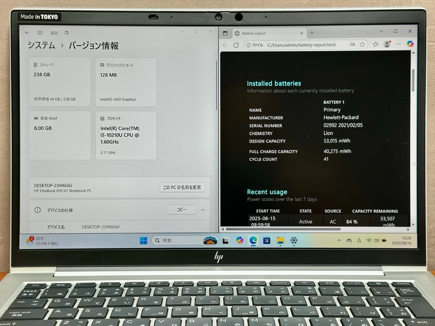 HP EliteBook 830 G7 ノートパソコンです 【情報】 ブランド:HP 型番:EliteBook 830 G7 CPU:Core i5 10210U メモリ:8GB SSD:256GB 画面サイズ:13型 (1920x1080) OS: Windows 11 【状態】 ランクAB 使用感少なめ、全体的にきれい 【付属品】 45W充電器 中古品であることご了承ください
