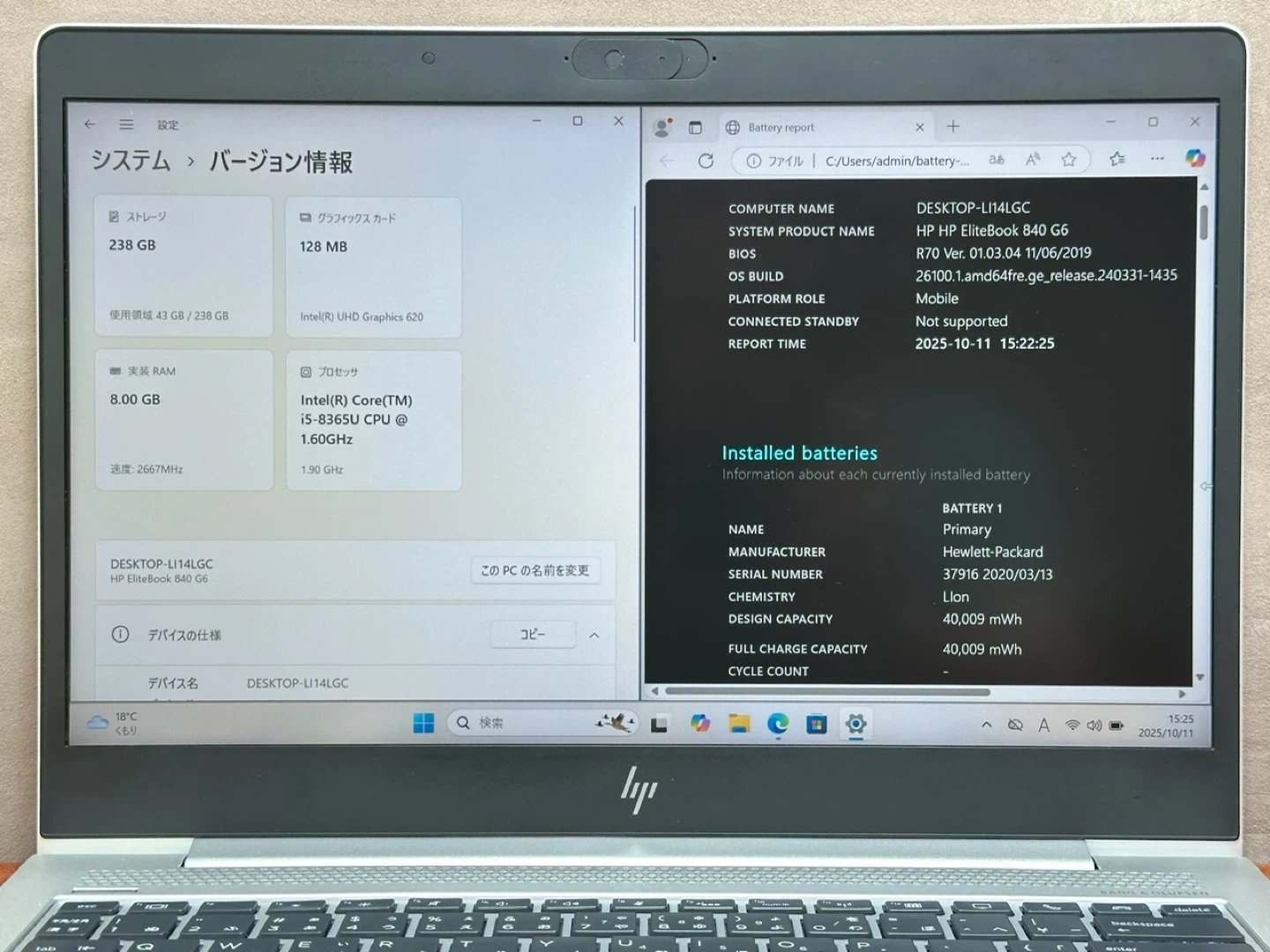 【商品名】 HP EliteBook 840 G6 【商品説明】 ■スペック ・CPU: Core i5-8365U 1.6GHz, ターボブースト: 4.1GHz ・RAM: 8GB 2667MHz ・統合グラフィックス: Intel UHD Graphics 620 ・ストレージ: 256GB SSD M.2 PCIe ・ディスプレイ: 14.1インチ ・指紋認証 ・ ・Webカメラ搭載 ・WiFi, Bluetooth搭載 ・解像度: 1920x1080 ・OS: Windows 11 Pro ・Office付 ■状態 ・起動確認済品, . ・設定は全て完了しておりますので、お手元に届き次第、すぐにご使用頂けます (本品は中古品なので、バッテリーの寿命は保証できません。ご理解の上でご購入下さい) ■外装・機能状態 【外装状態】B : 良品 : 小さなキズや擦れあり。動作に問題なし。 【液晶状態】A : 綺麗な状態。ドット抜けはなく、微細なキズがある場合がありますが、目立たず使用に支障はありません。 【機能状態】A : 機能良好。基本動作はすべて正常。軽微な経年劣化: バッテリー消耗程度あり。 ・中古品かつ個人での検品のため、外観の状態につきましては主観的な判断や見落としがある場合がございます。予めご了承ください。 ・ご入札前に商品の状態を写真でご確認ください。 ■付属品 本体、ACアダプタ、電源コード ■保証期間: ・初期不良の場合、到着後2週間以内にご連絡ください。 ・C、D、 Jランクのものは一律保証無し商品となりますのでよくご確認ください。 ・不明点がございましたら、ご購入の前にご質問をお願い致します。 ご検討よろしくお願いいたします。 <古物営業法に基づく表示> 許可番号:東京都公安委員会 第307792517204号 #Kantopc #ノートパソコン #中古パソコン #おすすめPC #HP #EliteBook840G6 #i5 #8世代 #安心保証付き #動作確認済み #24H以内発送 #無料発送