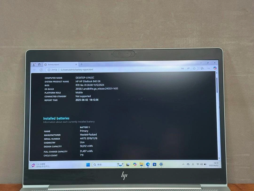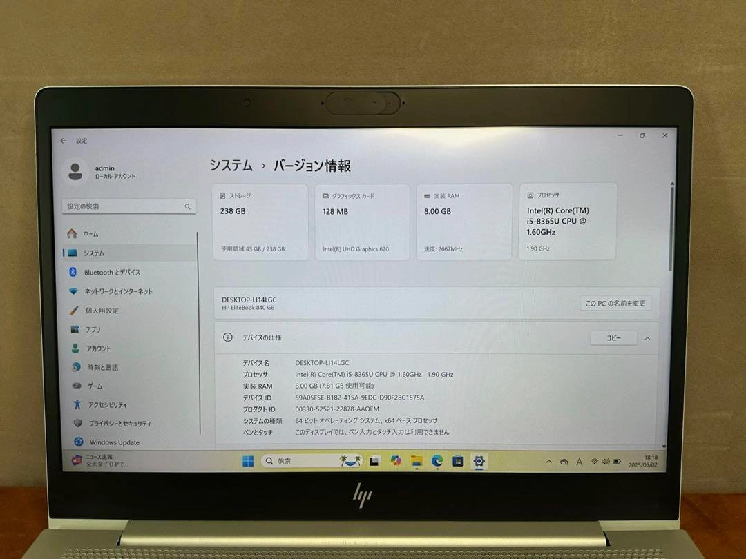 HP EliteBook 840 G6 (193) ■スペック ・CPU: Core i5-8365U 1.6GHz ・RAM: 8GB ・ストレージ: 256GB. ・ディスプレイ: 14.1インチ ・指紋認証 ・Webカメラ搭載 ・解像度: 1920x1080 ・OS: Windows 11 Pro ・Office 無し. ■状態 起動確認済品です。設定は全て完了しておりますので、すぐにご 使用頂けます。(本品は中古品なので、バッテリーの寿命は保証できません。ご理解の上でご購入下さい) ■外観状態 中古品ですので、使用に伴った擦り傷や汚れなどはあります。状態は写真でご確認ください。 ■付属品 本体、ACアダプタ、電源コード ■保証期間: 初期不良の場合、到着後7日以内にご連絡ください。 不明点がございましたら、ご購入の前にご質問をお願い致します。 ご検討よろしくお願いいたします。