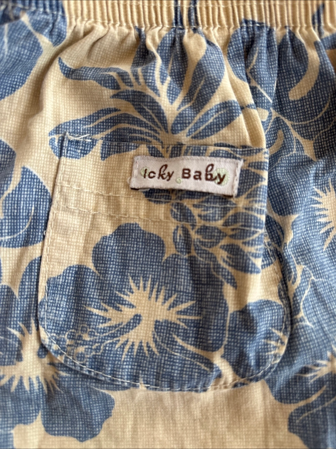 あたたかさ・ブランド:Icky Baby ・ハーフパンツ ・サイズ:18-24 ・花柄、ブルー ・ウエストゴム ・ポケット付き MADE IN USA