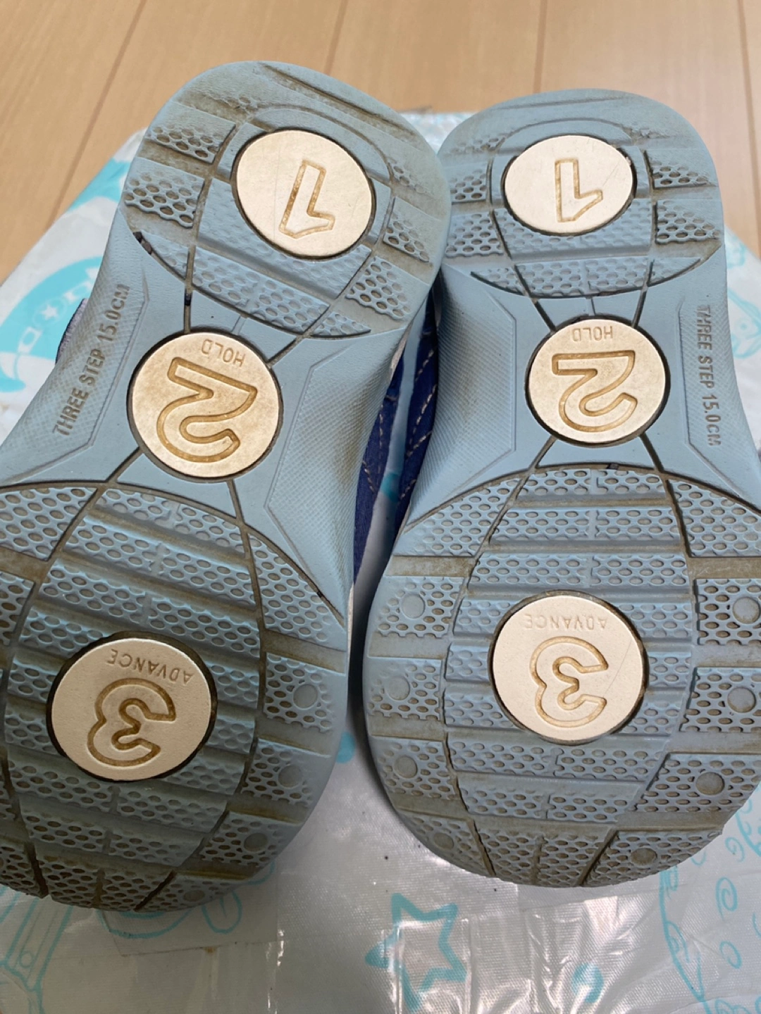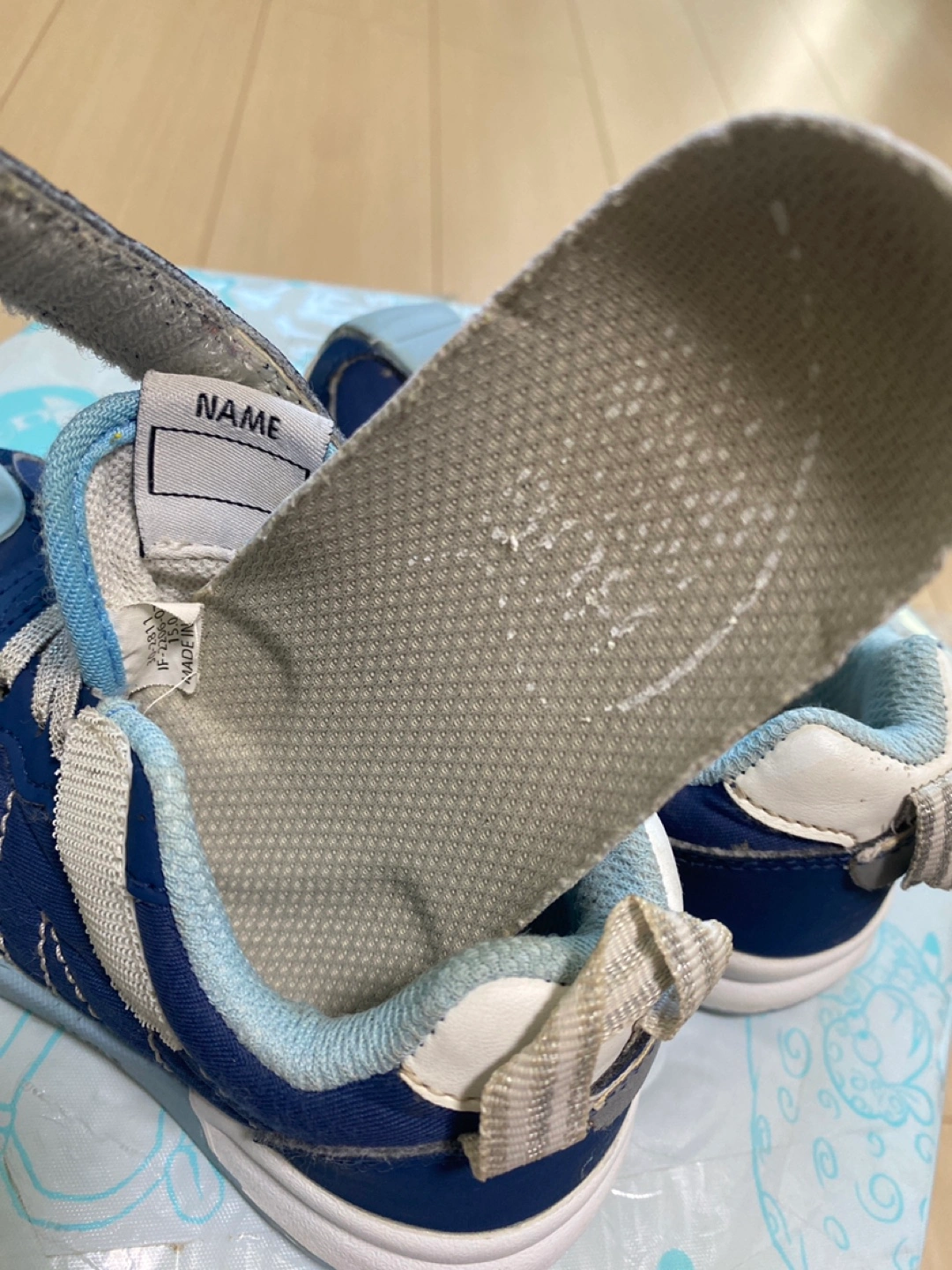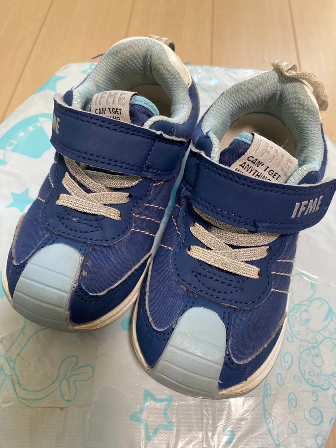 イフミーのスニーカー、15cmです。 イフミーにしては比較的ピッタリ目な作りかな?と思います。 園庭履きにしていたので、使用感あります。 ホームクリーニングしましたが、砂が取りきれてない可能性あります。(撮影時、少し出てきまし た) つま先側に白っぽいところありますが、カビではなく、星柄ですのでご安心ください。 足裏かかと側、やや擦れあり。 かかと後ろに名前シール貼り跡あり。 保育園履きや公園履き、避難靴、サブシューズとしていかがですか? ・ブランド:イフミー ・サイズ:15cm ・カラー:ネイビー、水色、白 ・マジックテープ ・使用感あり