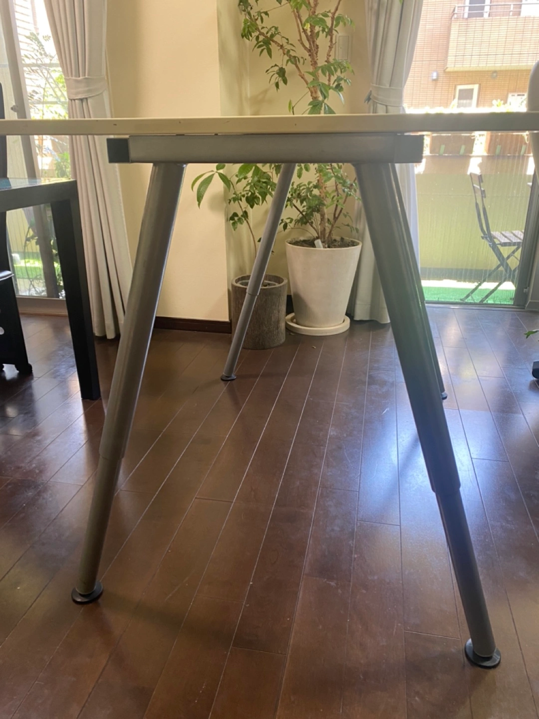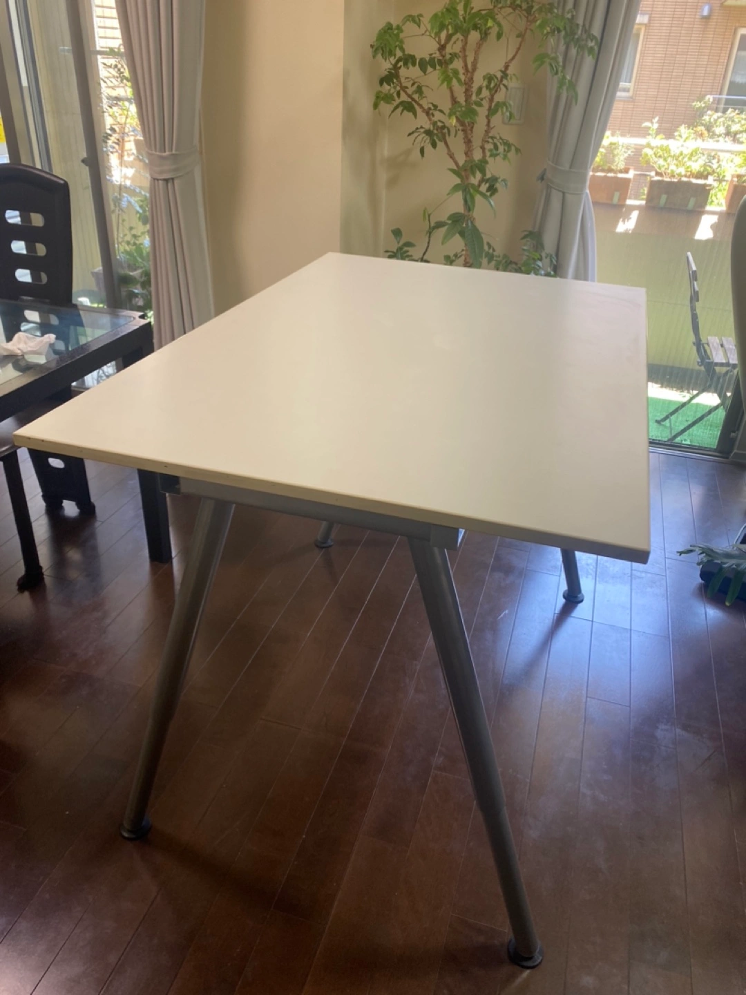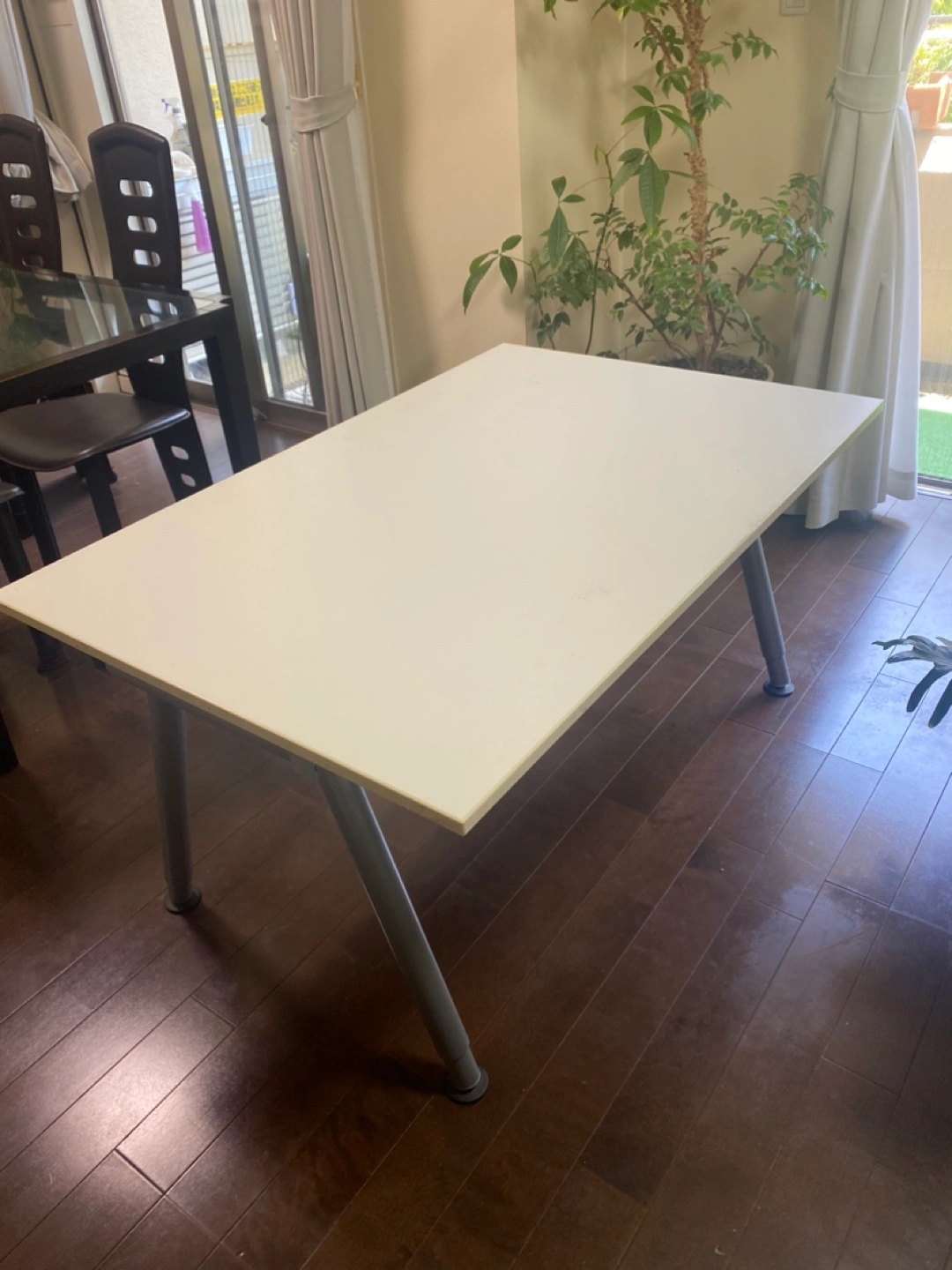 IKEAの昇降デスク 高さの調節も簡単 組み立て式 アパレルの事務所で使用していました。 一番高くすると、立って作業するのに丁度良いです。 ホワイトボード、脚2脚に分解できるので、しまって置くにも便利です。 古いですが、ボードは、割と綺麗です。 最後の写真の様に黒い汚れなどが脚にあったりします。 80×120㌢のサイズのもの2組 80×160㌢のサイズのもの2組 あります。複数でご希望の方、コメントください。 桜まで車で取りに来てくださる方にお願いします。