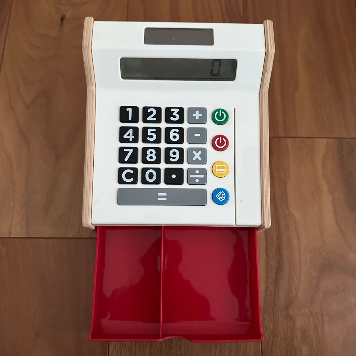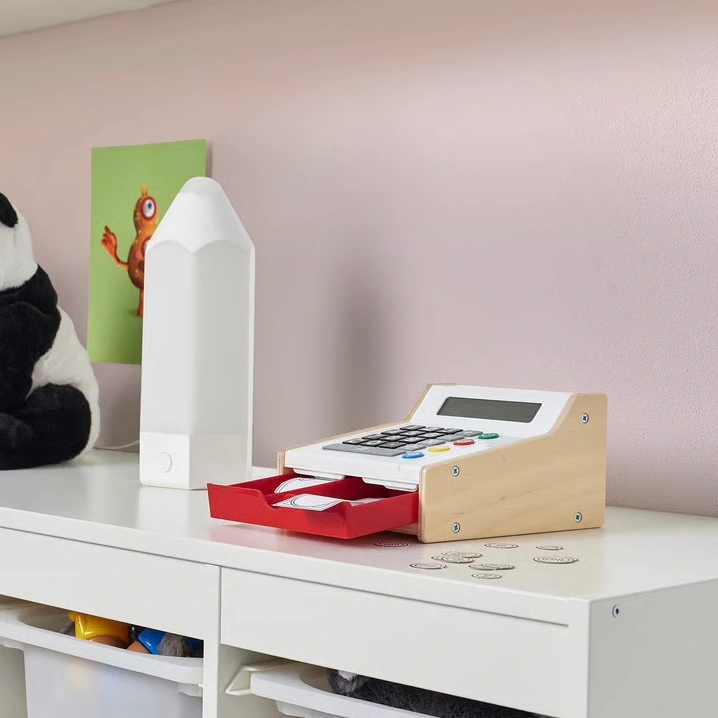 IKEA DUKTIG ドゥクティグ おもちゃ レジ 商品番号 605.720.01 【商品の詳細】 お友達と楽しくお店屋さんごっこをして遊べます。遊びながら数やお金について学べます。 ままごと遊びがもっと楽しくなります。子どもは大人の真似をしたり、自分の役割を考えたりするうちに社会性を身につけます。 クリアなディスプレイを備えた、実際に使える計算機です。お子さまはお買い物の合計金額を計算できます。 【サイズ】 長さ: 19 cm 幅: 11 cm 高さ: 18 cm 【状態】 ディスプレイ用でしたので目立つダメージ等ございません。 おもちゃのお金とクレジットカードなし。