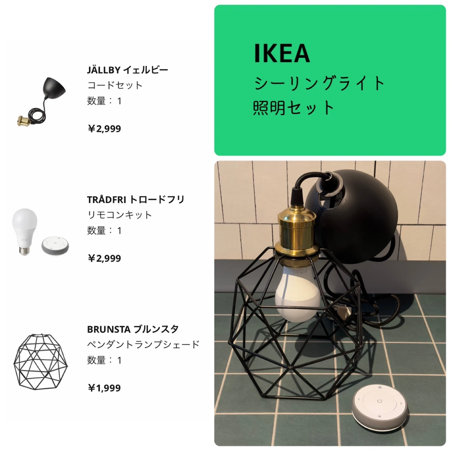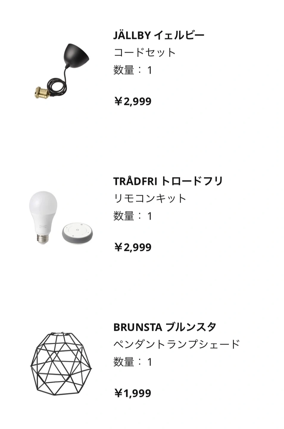 【IKEA】照明セット ブルンスタ/イェルビー/トロードフリ