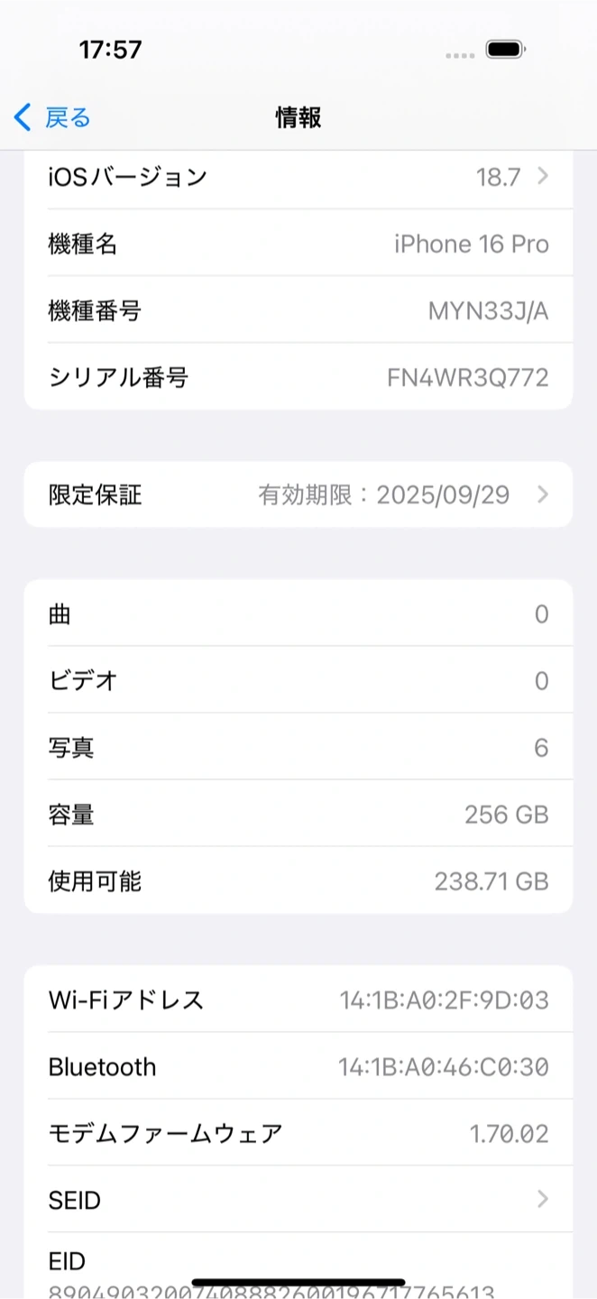 コメントなし即購入OK 家にペットなし、喫煙者なしです 商品情報 ■ iPhone 16 Pro 256GB SIMフリー ■ バッテリー最大容量 96% ■ 残債なし(一括購入) ■ IMEI 1 : 35 830963 4153749 ■ ネットワーク利用制限なし ■ 初期化済み(探すオフ) ■ 使用期間 : 2024年9月から1年弱 自宅でサブ機として使用していたためかなり綺麗です。 ■ 修理歴 : なし ■ 保証:純正故障保証期限2025/9/29 AppleCare未加入 ■ 状態 : 目立った傷や汚れはなし(写真で判断してください) ■ 動作:動作確認済み、特に問題なし。 2024/9 Apple公式オンラインストアで一括購入(残債なし) 購入直後に保護フィルム、ケースに入れて大切に使用してきました。 おまけで以下をおつけします。 ・Magsafe対応ケース16 Pro ケース ・ガラスフィルム 1枚未使用 ・カメラレンズカバー ※iphone16pro購入後すぐに装着しました。 コメントなし即購入OK 家にペット・喫煙者なし ※注意 すり替え防止の為、返品等の対応は出来かねます。 中古品のためご理解のあるかたのみ、お願いします。 シリーズ···iPhone 機種名···iPhone 16 Pro スマートフォン カラー···ナチュラルチタニウム 容量···256GB 購入したキャリア···SIMフリー 付属品···充電ケーブル,箱 バッテリー最大容量···95~99% 画面割れ···なし 機能不良···なし 付属品···箱、ケーブル
