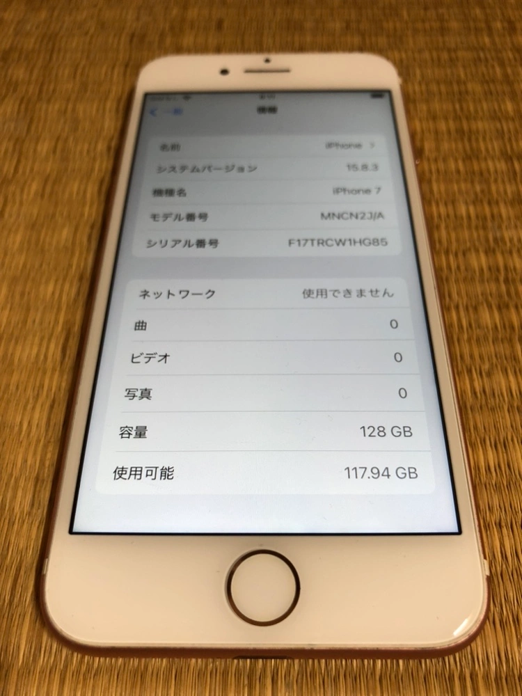 iPhone7 128GB simフリー ピンク(中古)になります。使 わなくなり、仕舞い込んでいたのが掃除をした時に出てきました。動作確認の方、軽くですが、しました。問題なく使う事、可能かと思います。 バッテリー容量86% 128GB 動作正常 SIMフリー 残債なし 付属品なし 傷や汚れは、多少有りますので画像の方で確認お願いします。 こちら、中古品になりますので、nc/nrでお願いします。