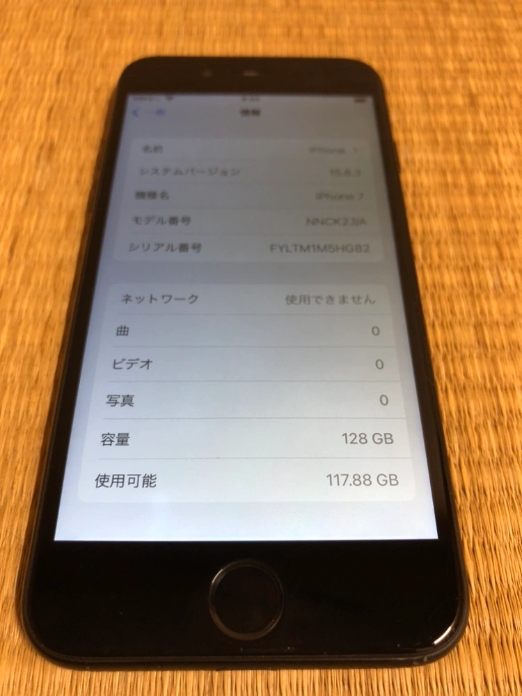 iPhone7 128GB simフリー ブラック(中古)になります。使わなくなり、仕舞い込んでいたのが掃除をした時に出てきました。動作確認の方、軽くですが、しました。問題なく使う事、可能かと思います。 バッテリー容量85% 128GB 動作正常 SIMフリー 残債なし 付属品なし 傷や汚れは、多少有りますので画像の方で確認お願いします。 こちら、中古品になりますので、nc/nrでお願いします。
