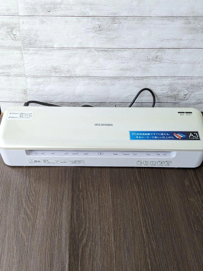 A3サイズ対応、35秒で加熱完了のラミネーターです。 - モデル: A3 - ブランド: IRIS OHYAMA - 機能: 35秒で加熱完了 - サイズ: A3対応 - 操作ボタン: 複数の設定ボタンあり - カラー: ホワイト ご覧いただきありがとうございます。 ご希望の方はお気軽にご連絡ください。