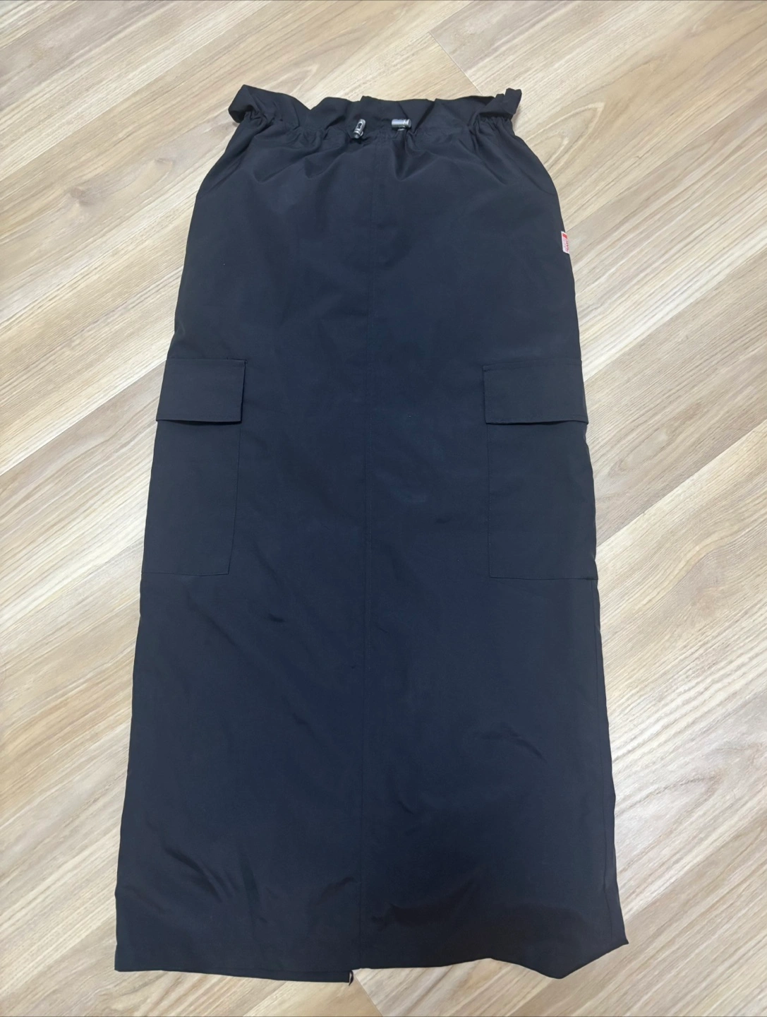 Javaの黒ロングスカートです。 下にレギンスはけます😊 シャカシャカ素材で、乾きやすい✨キャンプやフェスにもおすすめです! ・カラー:ブラック ・サイズ:M(バスト79-87, 身長154-162cm) ・ポリエステル100% ・カーゴポケット付き ・後ろ下動きやすいスリット入り ・よごれ、劣化なし 158cmでは、下にはつかないものの、少しばかり長いので、160cm 以上の方におすすめです!