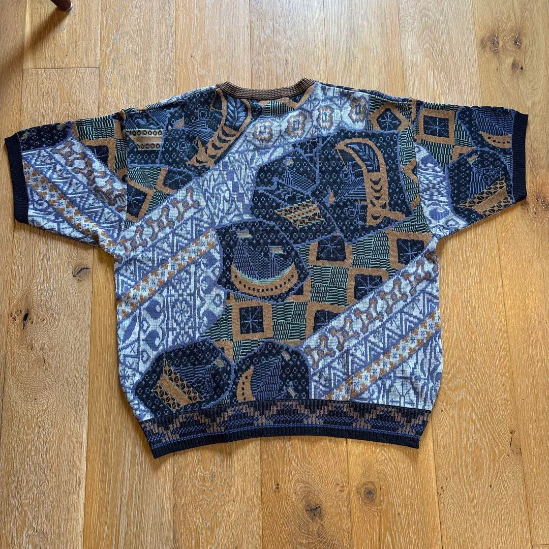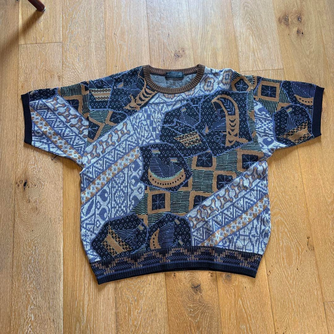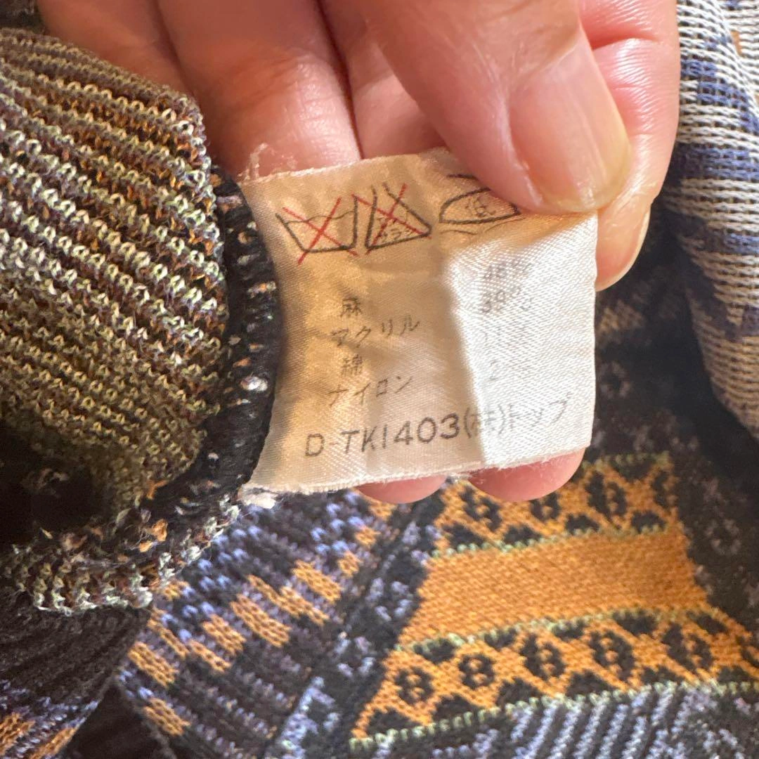 ご覧いただきありがとうございます。 フランスの老舗ブランド Jean-Louis Scherrer HOMME の総柄ニットセーターです。 90年代らしいレトロなジオメトリックデザインが特徴です。ヴィンテージファッションをお探しの方におすすめです。 祖父が愛用していたもので、大切に保管されていました。 •ブランド:Jean-Louis Scherrer HOMME •サイズ:表記なし(日本サイズでおそらくM〜L相当、実寸は下記参照) •素材:麻、アクリル、綿、ナイロン混 •カラー:ネイビー×ブラウン系 総柄 •状態:目立った傷や汚れはなく、比較的良好です ※ヴィンテージ品のため多少の使用感はございます。古着にご理解のある方のご購入をお願いいたします。後ろに少しほつれがありますの。写真にてご確認下さい 実寸(平置き・素人採寸) 着丈:約60cm 身幅:約54cm 肩幅:約53cm 袖丈:約20cm ご希望の方はお気軽にご連絡ください。