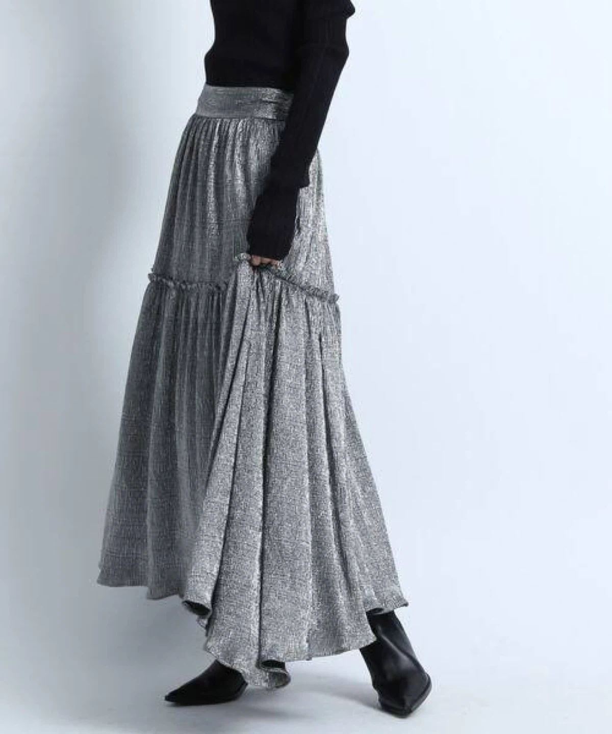 ご覧いただきありがとうございます。 JEANASISのアッパーライン、elのマキシ丈フレアスカートです。一目惚れして購入しましたが、着用機会があまりなかったため、出品します。たっぷりのギャザーとメタリックの生地で、存在感が抜群です。定価13200円。 - 色: シルバー - ブランド: JEANASIS - サイズ: F - 素材: ポリエステル95%, ポリウレタン5% ご希望の方はお気軽にご 連絡ください。