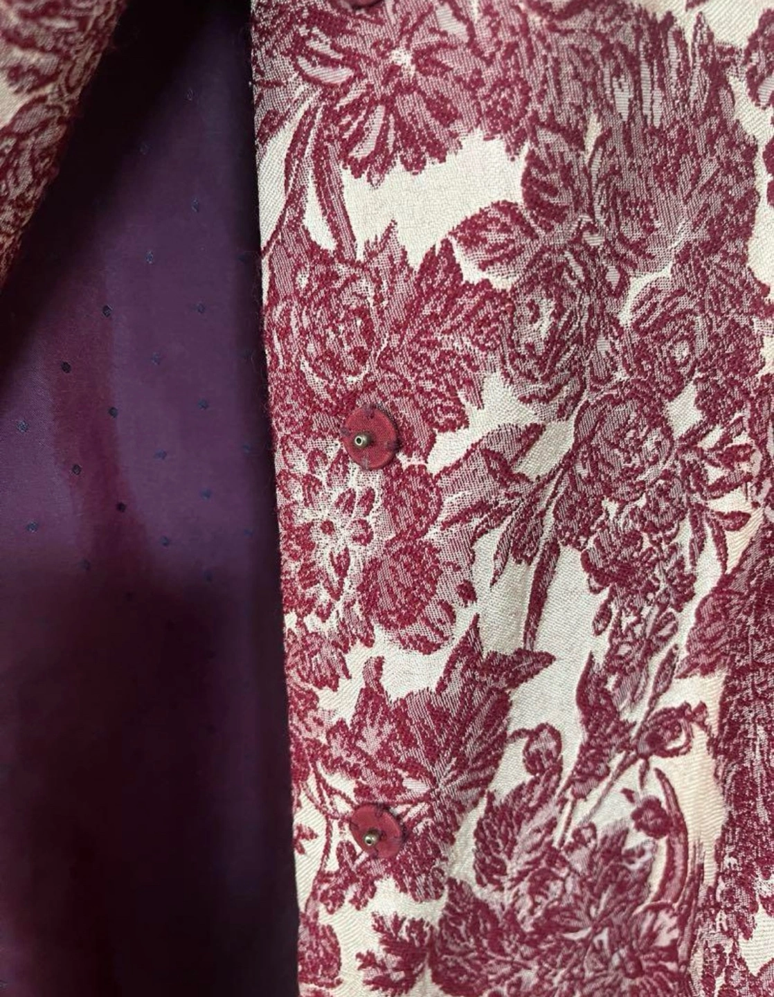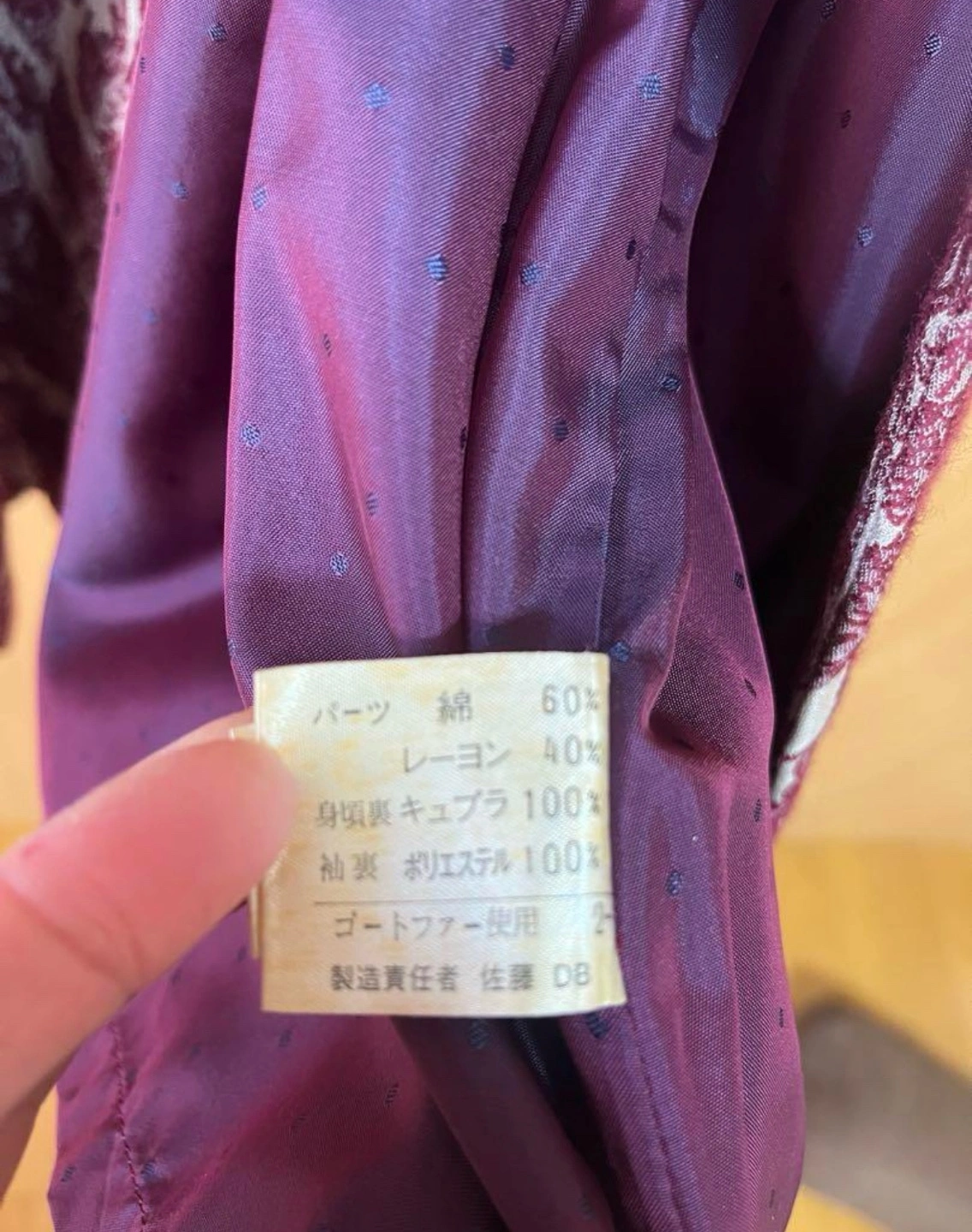 23年ほど前に購入したジネスのコートです。 当時5万円以上したと記憶しています。 ステキな生地で一目惚れして購入し、おばあちゃんになるまで使いたいと思っていましたが、途中年齢的に似合わず、クリーニングにだして保管していました。最後にクリーニングに出した際に取れないシミありと言われ、その時は目立たなかったのですが、最近見直してみたところ、袖口と前見頃のすそあたりに汚れがありました。写真でご確認ください。 そのため、金額をかなり下げました。 重厚な雰囲気で、高級感があります。 アンティークが好きな方や古着好きな方、いかがでしょうか。 おばあちゃんになってから着てもきっと可愛いと思いますが、クローゼット整理のため、手放しを決めました。少し迷ってます。。 もともとはファーがついていましたが、紛失しています。ご了承の上ご購入下さい。 人目を引く可愛いコートです。 古着 ビンテージ レトロ アンティーク コート