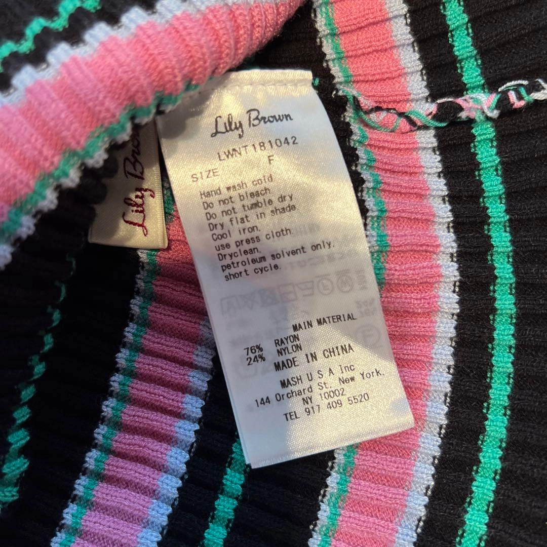 K-16 リリーブラウン ブラック 袖なし ニット ボーダー 1回着用 洗濯等してあります。 サイズ等は品番等でご自身でお調べ下さい ●状態、注意事項: 自宅クローゼットにて保管していました。確認出来るシミや汚れ、大きな傷等はありませんが、中古品の一度人の手に渡ったということをご理解の上でご購入をお願いします。 写真の写っている物が全てとなります ハンガー付きません ご不明点はお気軽にお問い合わせください。