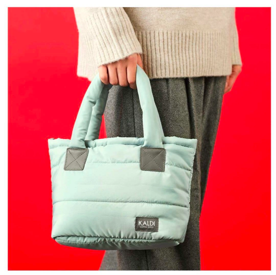 軽量でキルティングデザインのミントグリーンハンドバッグ。 キルティングのトートバッグです。内側にはポケットとスナップボタンがあるので荷物がちょっとしたお出かけのおともにぴったり! KALDI カルディ 2025年福袋 食品 サイズ(約)縦23cm×横25cm×マチ14cm 持ち手36cm - ブランド: KALDI - カラー: ミントグリーン - 素材: ナイロン - デザイン: キルティング - ハンドルタイプ: 短い ハンドル - サイズ: 小型 - 特徴: 軽量 ご覧いただきありがとうございます。 カラー···グリーン 付属品···付属品なし 汚れ・破れなど···なし ご希望の方はお気軽にご連絡ください。