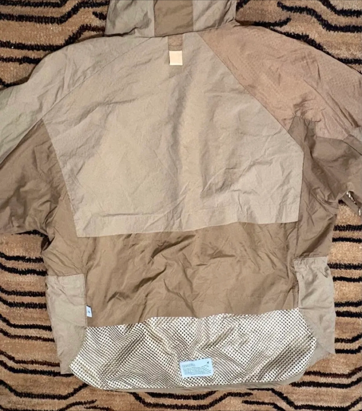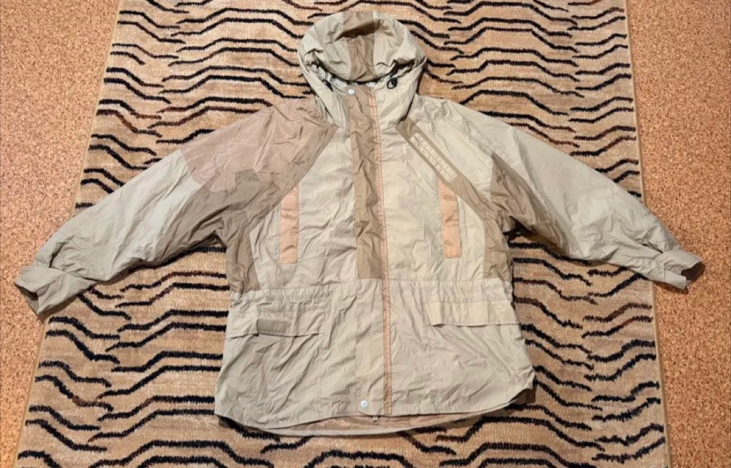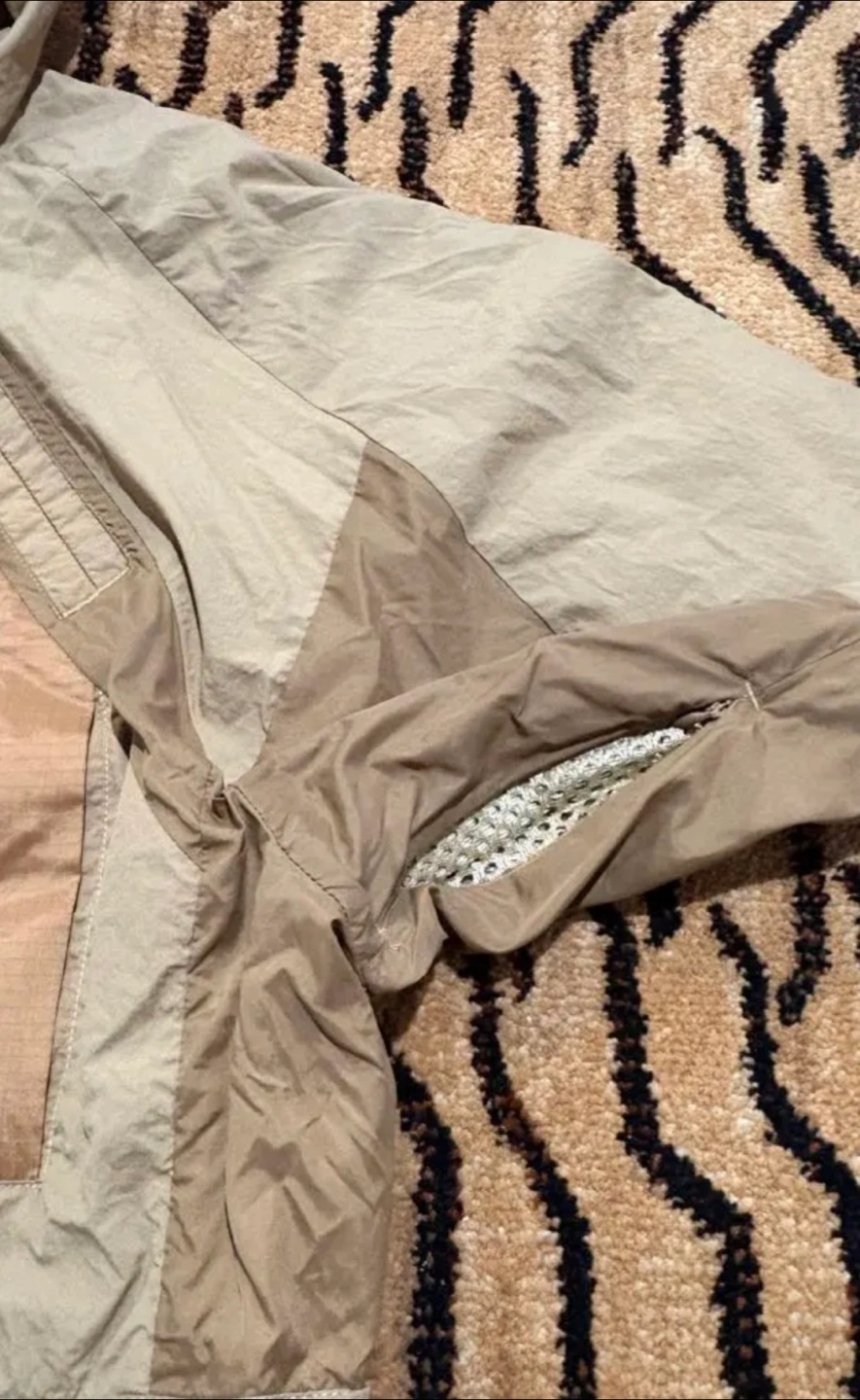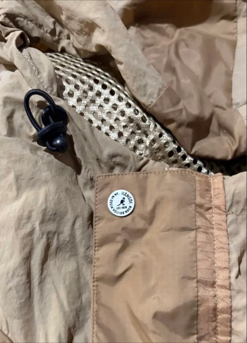 KANGOL ナイロンジャケット マウンテンパーカー 色:ベージュ サイズ:フリー 素材:表地-ナイロン100% 裏地-ポリエステル 100% フード付き ダブルジップ ポケット多数 腕に通気用のジップ ウエストや袖口フード絞れる仕様 着丈:78cm 身幅:68cm フードから袖口まで:80cm ※素人採寸のため参考程度でお願いいたします。 1度のみ着用 自宅又は、清澄白河駅、森下駅まで 来て頂ける方でお願いいたします。