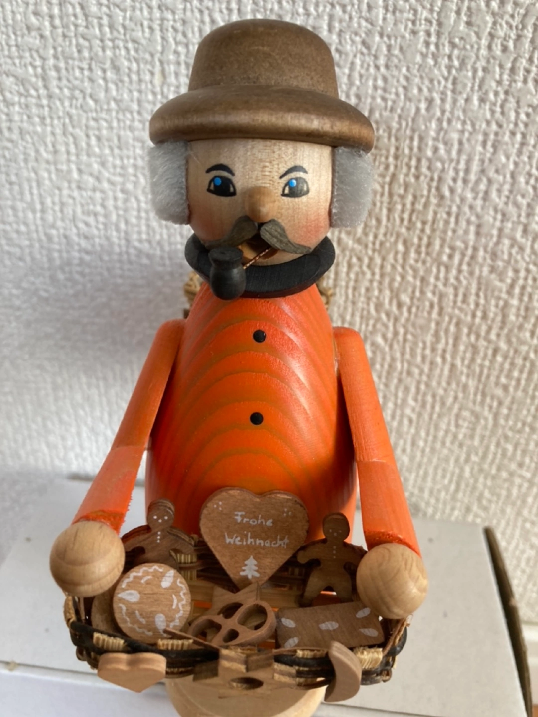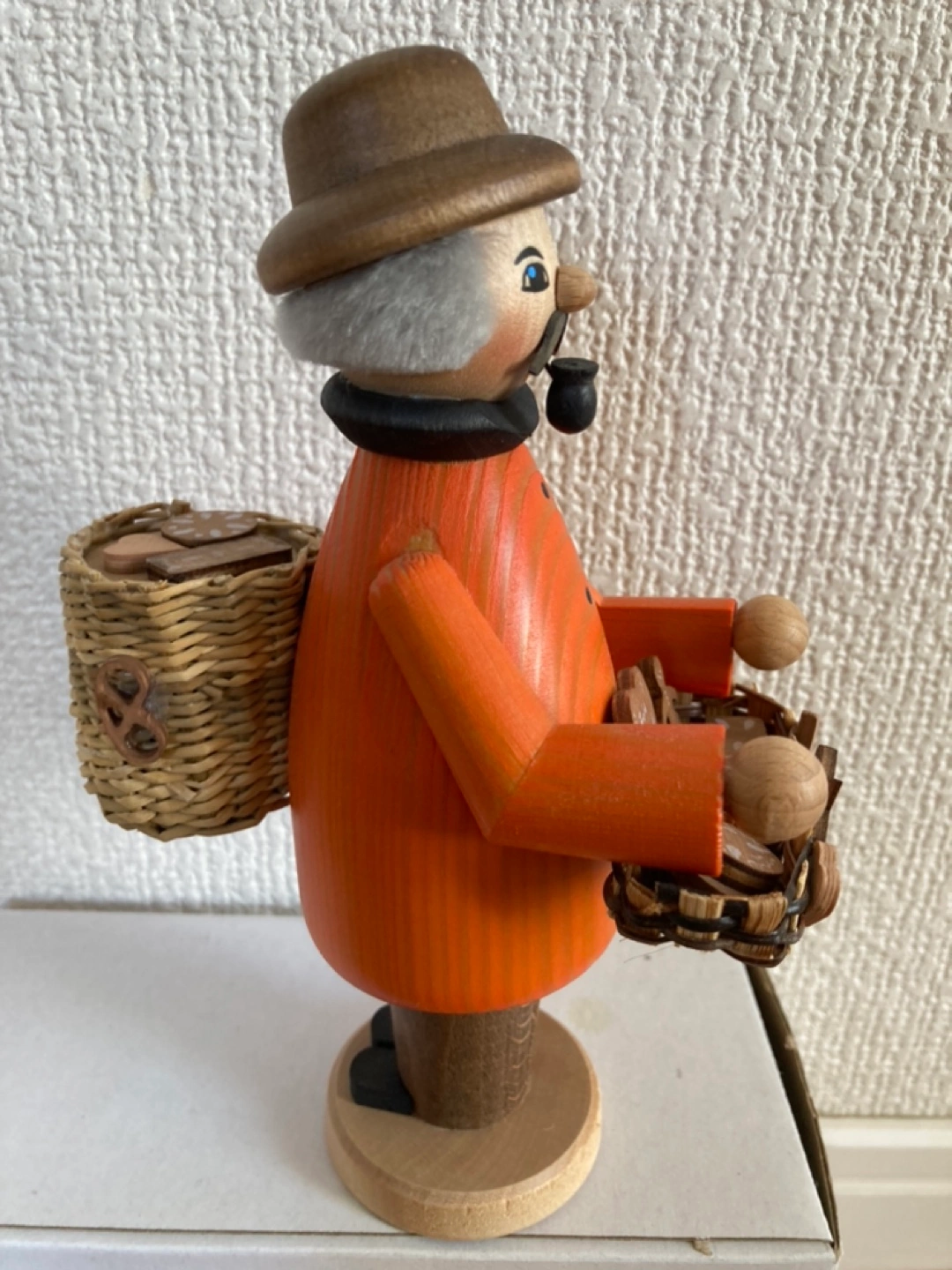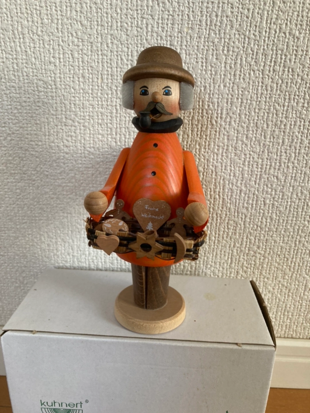 手作りでユーモアたっぷりな香炉 胴体の中に、コーン型のお香を入れて焚くと、人形の口からお香の香りと共にけむりがゆっくりと広がります。 kuhnert クーネルト ミニパイプ 人形香炉 お菓子売りとは ジンジャークッキーを抱えた、お菓子売りをモチーフにしたパイプ人形香炉です。 【特記】 製品は全てハンドメイド 職人技です。 【区分・生産国】 【雑貨】・ドイツ 一度使いまして、長期保存しておりました。 状態は良いかと思いますが、一度手にとりましたのでご了承ください。 コレクションでも人気のお品でした。 #キャロットで新生活