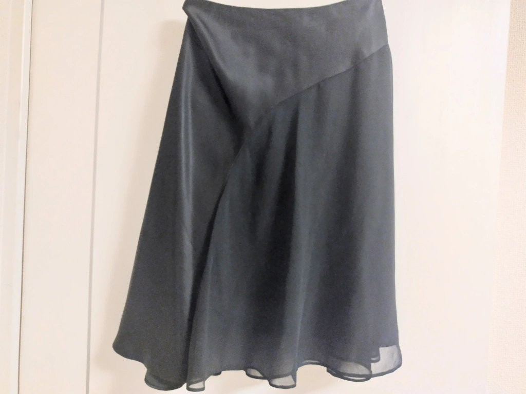 写真では分かりづらいですが、光沢のある生地とシアー生地を組み合わせたシルエットのキレイなデザインになります。 ファスナー付きで、ウエストの伸縮性は全くありません。 タグ記載のサイズです。 W 59~63 H 87~ 91 写真では分かりにくいと思いますが、背面に傷があります。(写真④) 太って着用出来なくなったため、出品します。 中古& 自宅保管になりますので、気になる方はご遠慮ください。 ご質問等がありましたら、お気軽にご連絡ください。