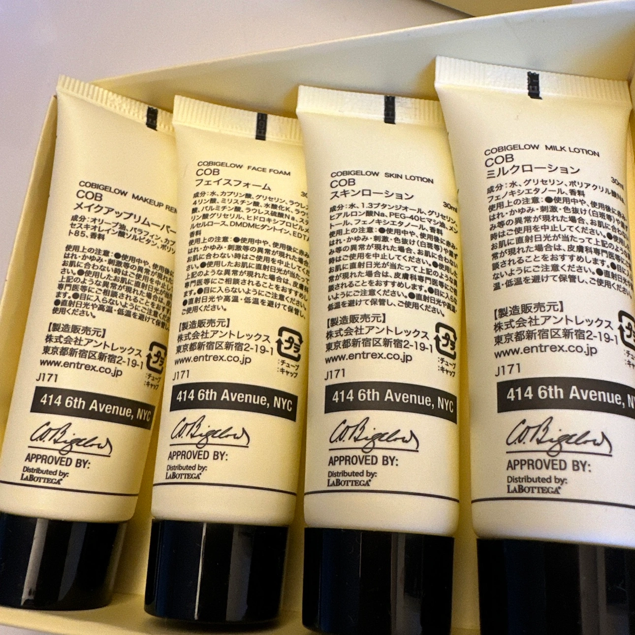 LA BOTTEGA ラボッテガ cobigelow アメニティ 4箱分 C.O.BIGELOW(シーオービゲロウ) メイクアップリムーバー 30ml スキンローション 30ml ミルクローション 30ml フェイスフォーム 30ml ✳︎撮影のために一箱開封しました。送料の関係で 箱から出して簡易梱包(プチプチ)する予定ですので ご了承の上お買い上げください。 イタリアのLa Bottega(ラ ボッテガ)社は、世界の有名ブランドのフルライセンスを持ち、バスアメニティを製作しています。 La Bottega社のポリシーは「テーラーメイド」。ブランドも持つ世界観を生かしつつ、そのホテルがリゾートホテルなら自然に抱かれた癒しを、洗練されたシティホテルであればトレンディさを、それぞれデザインや香りで表現をします。 C.O.Bigelow(シー・オー・ビゲロウ)は、アメリカで最も歴史あるアポセカリー(調剤薬局)と言われています。 古くは発明家エジソンやルーズベルト大統領婦人も愛用者の一人。 天然由来成分配合の伝統ある魅力的な商品は、長く愛され続けています。 種類···アメニティ パッケージ···ボトル/チューブ 種類···トライアルセット/サンプルセット 種類···アメニティ 種類···トライアルセット/サンプルセット 特徴···ホテル