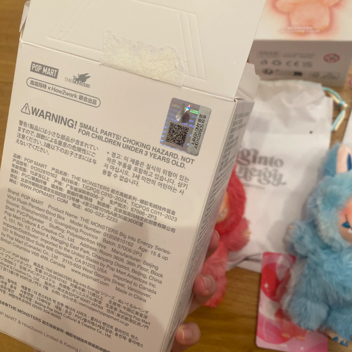 商品名: THE MONSTERS Big into Energy シリーズ ぬいぐるみペンダント 購入先: POPMART アソートBOXを購入した時の物です。 バラ売りでも可能で、4000円です!