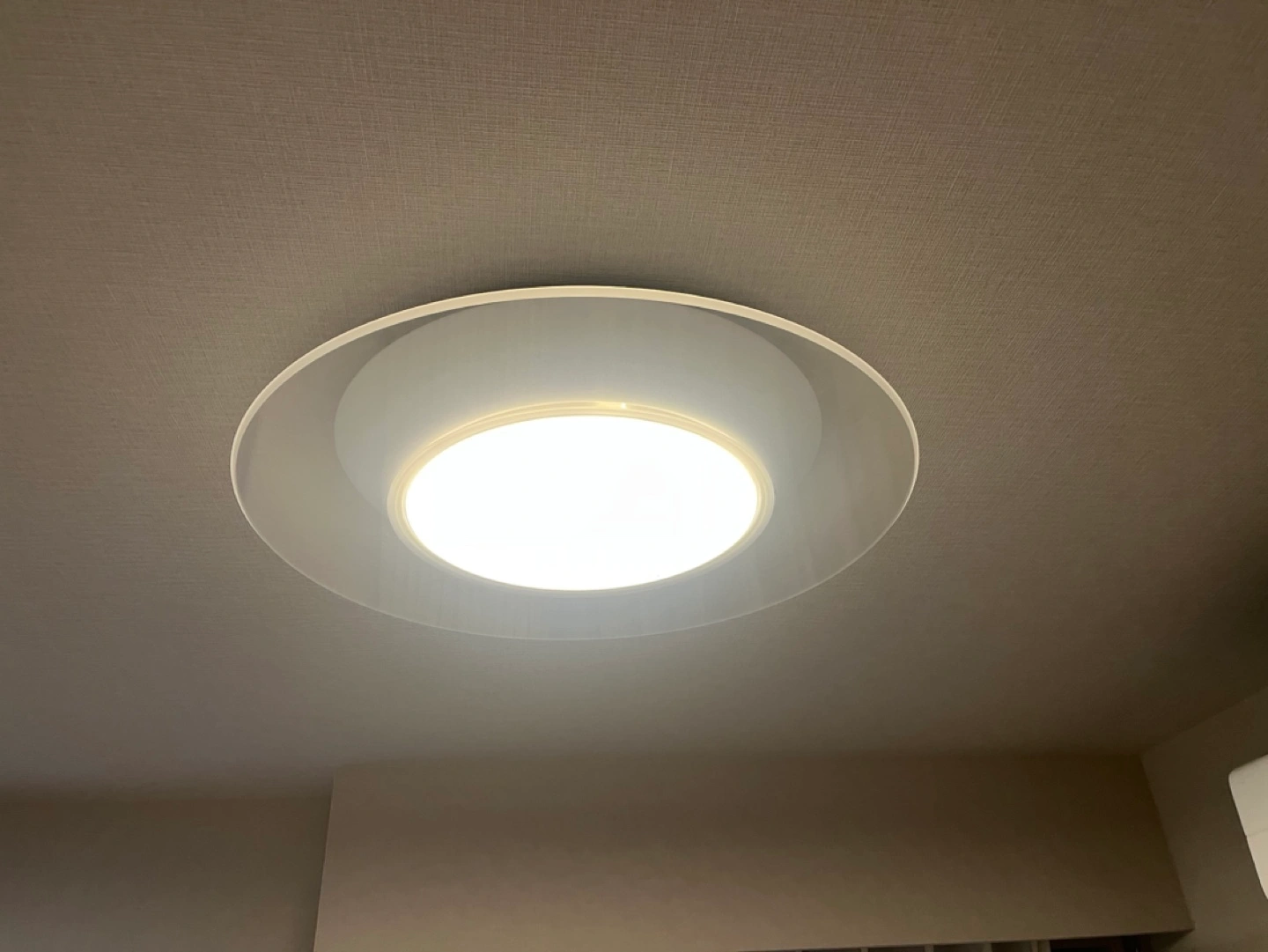 2019年頃購入し、ダイニングスペースに使っていました。 パネル面が透明なので圧迫感が少なく、 シーンに応じてセンター光とパネル光の点灯・消灯の切り替えもできます。 適用畳数:~8畳 調色対応(電球色~昼光色) 調光可 色温度:2700K ※電球色、6500K ※昼光色 定格光束:4299lm 重量:4.2kg