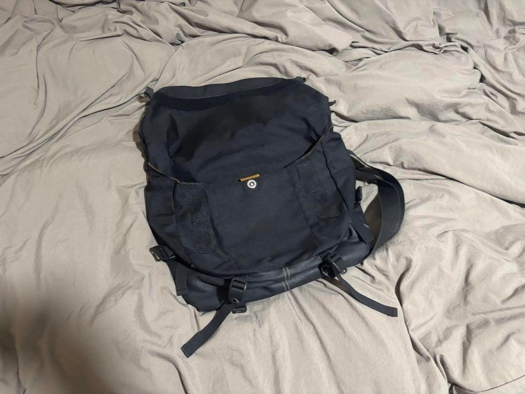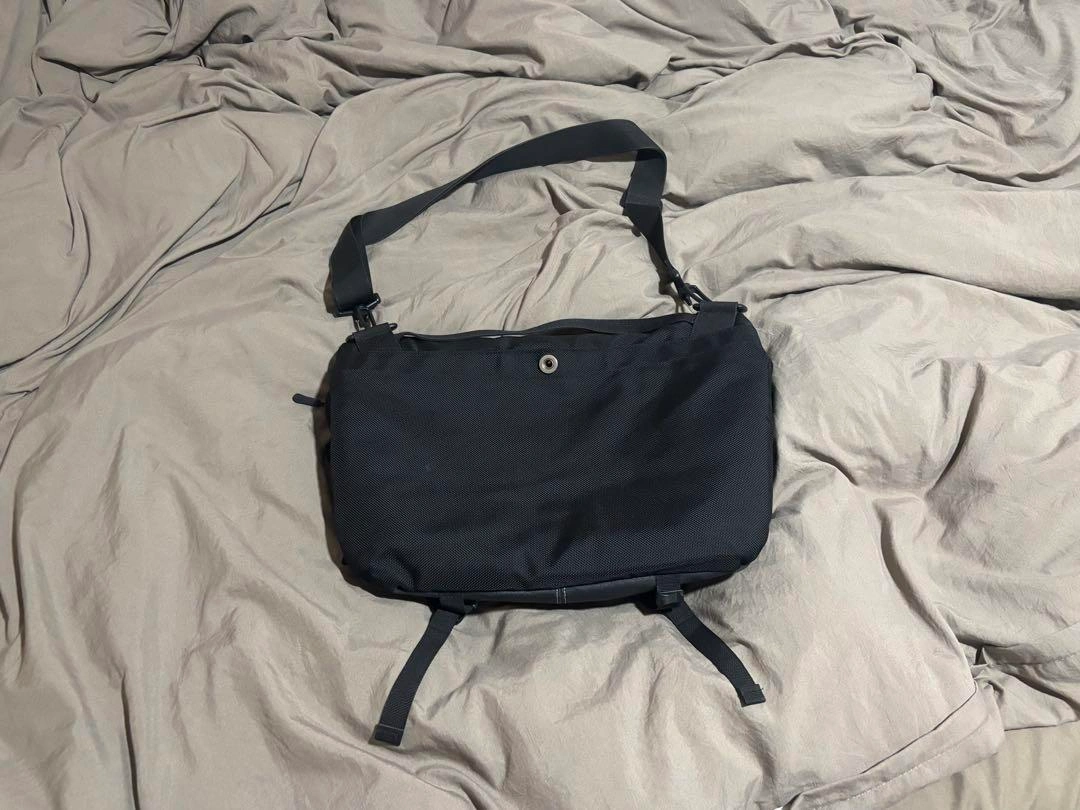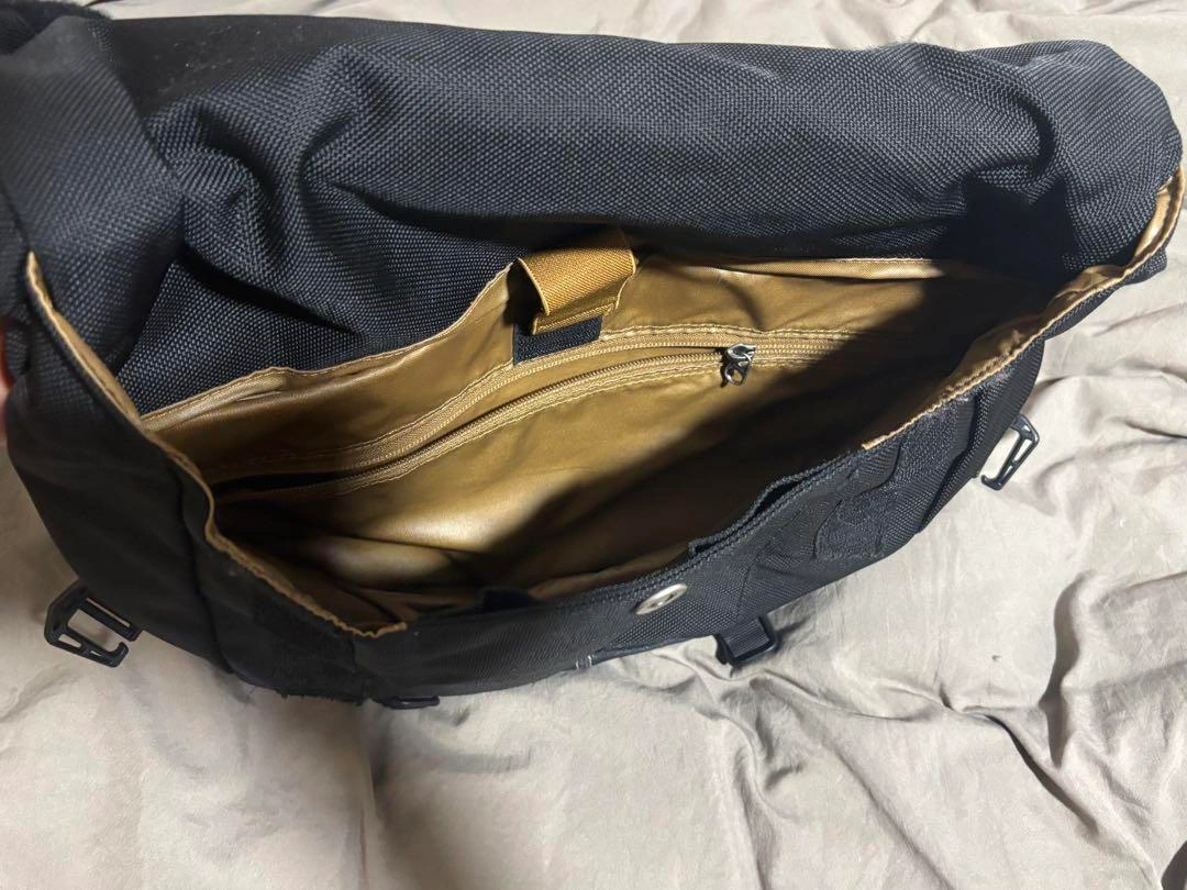 調整可能なストラップとジッパーポケット付きのブラックメッセンジャーバッグです。 - Color: Black - Type: Messenger Bag - Interior: Includes zippered pocket - Closure: Flap with buckle - Strap: Adjustable shoulder strap - Material: Durable fabric ご覧いただきありがとうございます。 ご希望の方はお気軽にご連絡ください。