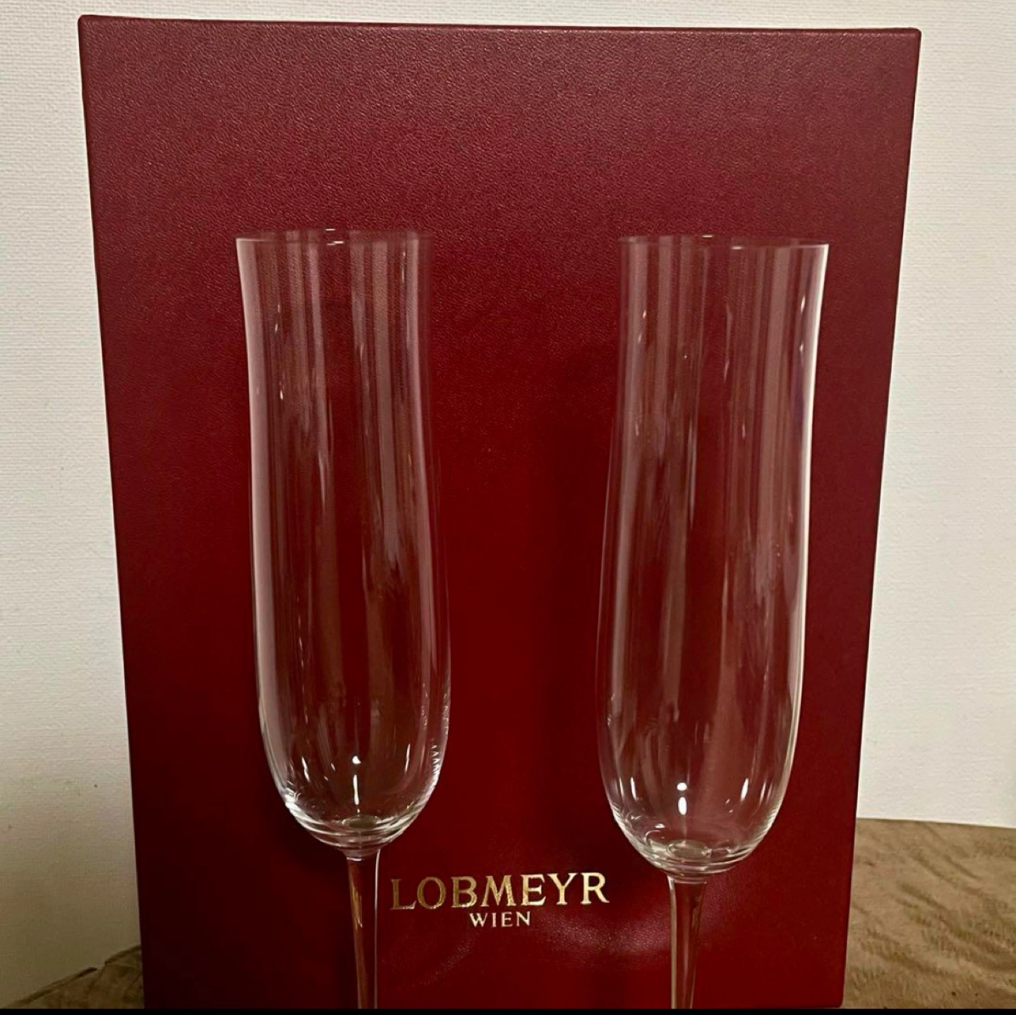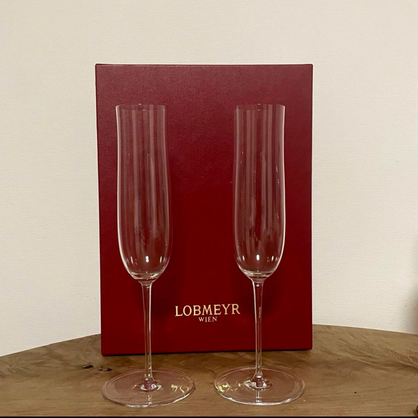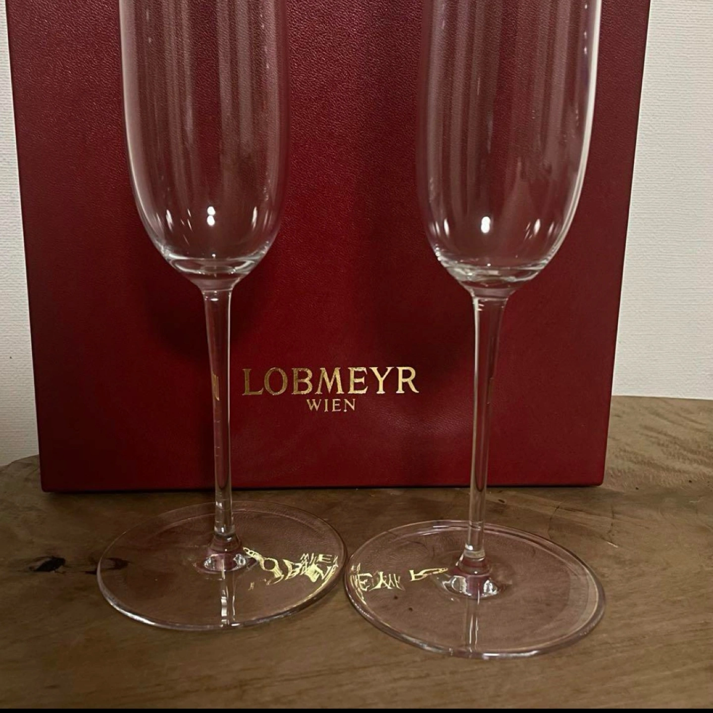 ロブマイヤー LOBMEYR バレリーナシリーズ シャンパングラス フルートグラス ペアセット Design Paul Wieser 1992 オリジナル化粧箱あり ロブマイヤーの刻印あり H25.5с Ф約4.5cm 250cc 新品未使用ですが、箱から出してキュリオケースに置いていました。 洗って消毒しましたので【未使用に近い】としています。 定価55,000円 "ガラスのプリマ"と称されるこの美しいシェイプは、歴史的名プリマのマーゴ・フォンティーンがティップ・トゥで立つ優美な姿をイメージしたものです。グラスの素材は鉛を含まないカリ・ガラスで、軽く弾力性があり堅牢です。また、手吹きならではの薄造りでしなやかなグラスは、ワインをはじめとする飲物の充分引き出すグラスとして、ワイン愛好家の方々、ソムリエやシェフの方々からも高い支持を得ています。 【ブランドの歴史】 LOBMEYRは、ウィーンに本拠を置く伝統的なガラスメーカーで、精巧なデザインと高品質な素材で知られています。特に、彼らのフルートグラスは、特別な場面での使用に最適です。 【製品の特徴】 この2個セットのフルートグラスは、透明なガラスで作られており、シンプルながらもエレガントなデザインが特徴です。泡立ちの良いシャンパンやスパークリングワインに最適です。 【使用シーン】 特別なイベントやお祝いの席にぴったりのアイテムです。高級感のあるデザインは、テーブルセッティングを一層引き立てます。 - ブランド: LOBMEYR - 産地: WIEN - 素材: ガラス - 数量: 2個セット - デザイン: フルートグラス - 色: 透明