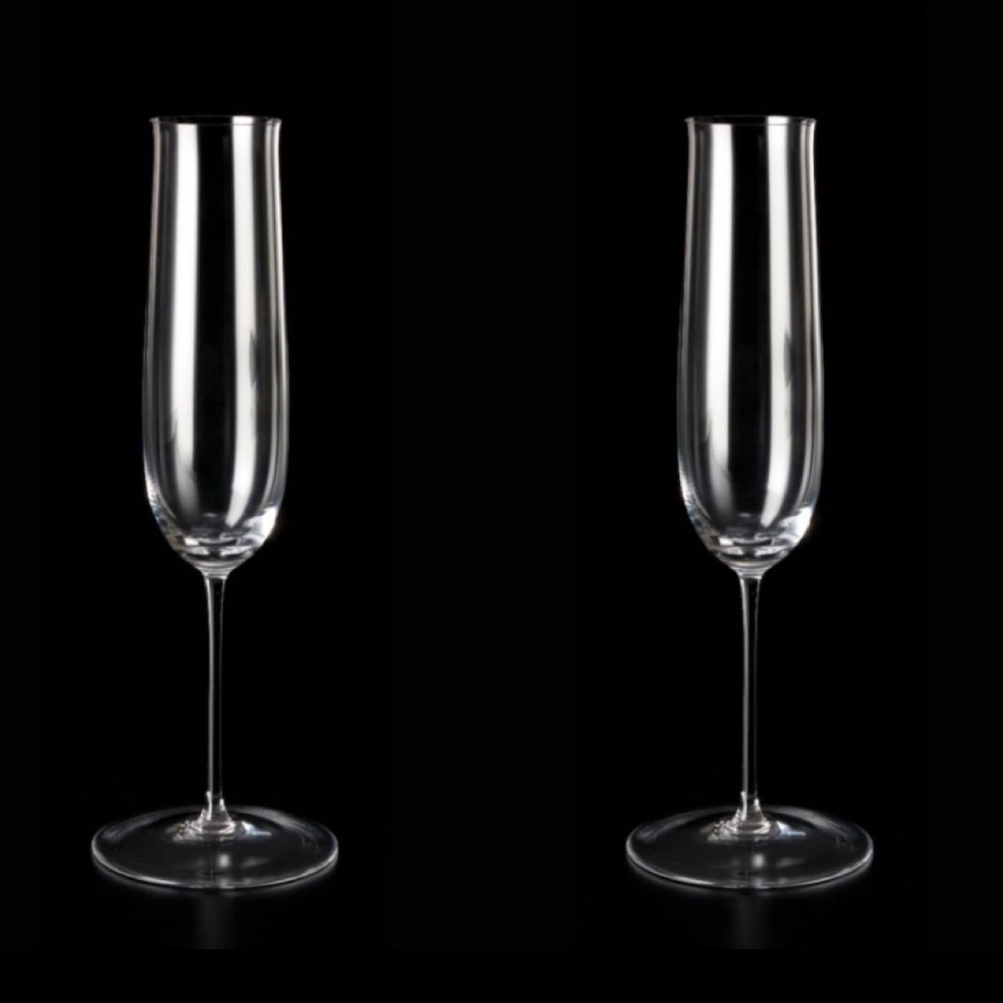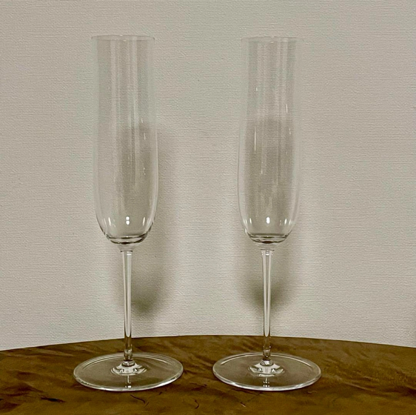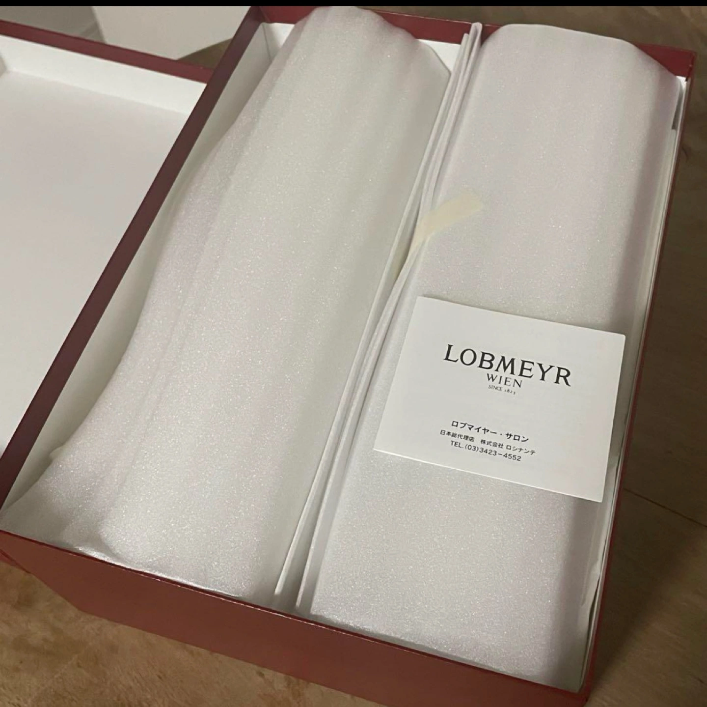 ロブマイヤー LOBMEYR バレリーナシリーズ シャンパングラス フルートグラス ペアセット Design Paul Wieser 1992 オリジナル化粧箱あり ロブマイヤーの刻印あり H25.5с Ф約4.5cm 250cc 新品未使用ですが、箱から出してキュリオケースに置いていました。 洗って消毒しましたので【未使用に近い】としています。 定価55,000円 "ガラスのプリマ"と称されるこの美しいシェイプは、歴史的名プリマのマーゴ・フォンティーンがティップ・トゥで立つ優美な姿をイメージしたものです。グラスの素材は鉛を含まないカリ・ガラスで、軽く弾力性があり堅牢です。また、手吹きならではの薄造りでしなやかなグラスは、ワインをはじめとする飲物の充分引き出すグラスとして、ワイン愛好家の方々、ソムリエやシェフの方々からも高い支持を得ています。 【ブランドの歴史】 LOBMEYRは、ウィーンに本拠を置く伝統的なガラスメーカーで、精巧なデザインと高品質な素材で知られています。特に、彼らのフルートグラスは、特別な場面での使用に最適です。 【製品の特徴】 この2個セットのフルートグラスは、透明なガラスで作られており、シンプルながらもエレガントなデザインが特徴です。泡立ちの良いシャンパンやスパークリングワインに最適です。 【使用シーン】 特別なイベントやお祝いの席にぴったりのアイテムです。高級感のあるデザインは、テーブルセッティングを一層引き立てます。 - ブランド: LOBMEYR - 産地: WIEN - 素材: ガラス - 数量: 2個セット - デザイン: フルートグラス - 色: 透明