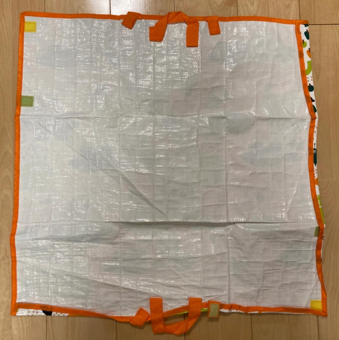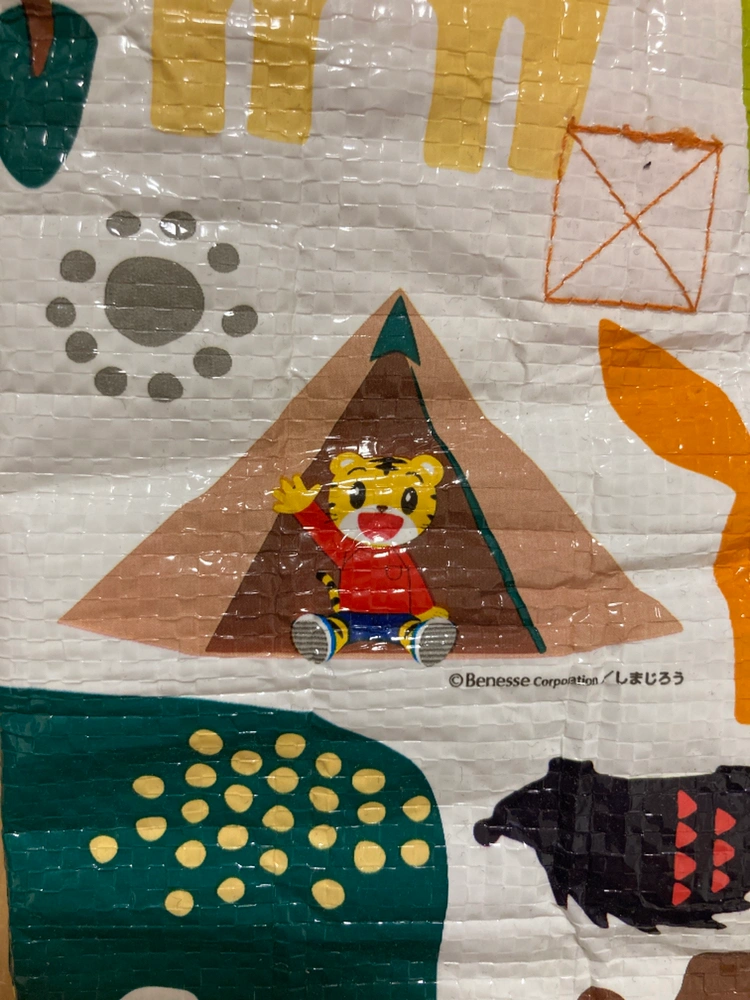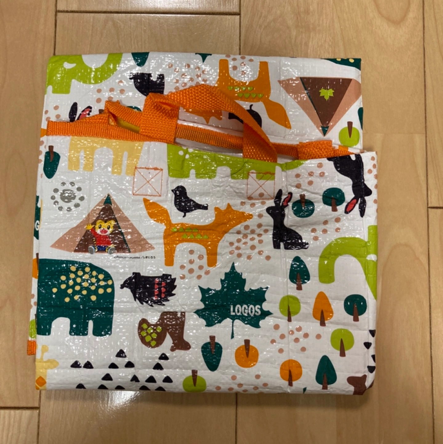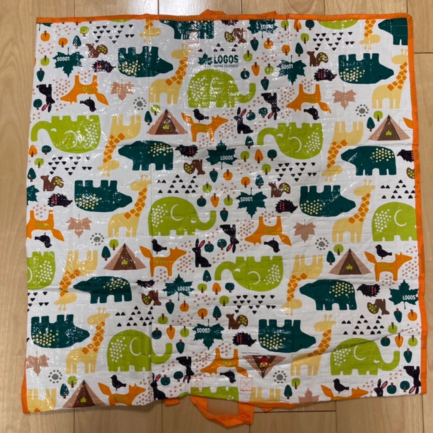 こどもちゃれんじのしまじろうとLOGOSがコラボしたレジャーシートです。 持ち手がついており、持ち運びに便利 です。 箱のように組み立てることもできるので、このシートの上でおもちゃを遊んだ後、そのまま箱の形にすれば簡単にお片付けができます。 一度使用するつもりで開封しましたが、結局使わずに棚にしまっておりました。 少しシワが出来てしまいましたがほぼ未使用です。