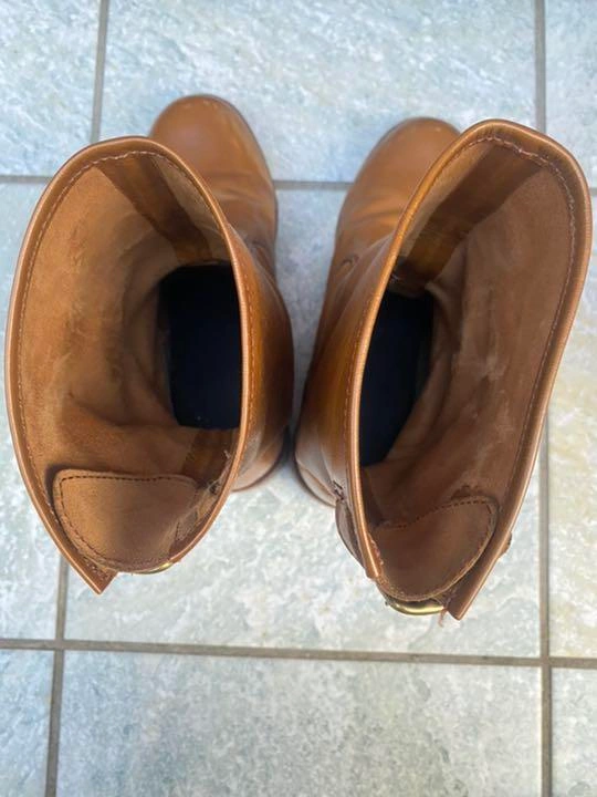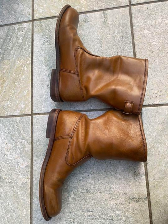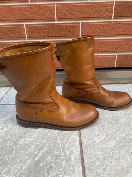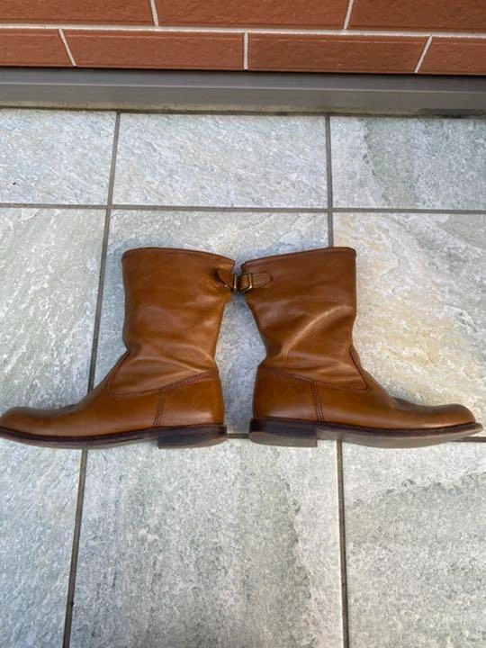 LOISIRのエンジニア風レザーブーツです。 定価19,440円。 代官山店で新品を購入しました。 サイズはMで、23-23.5cmぐらいです。 色はキャメルブラウン。 つま先···ラウンドトゥ カラー···ブラウン シューズ型···プレーントゥ ヒール高さ···0~3cm 柄・デザイン···無地 ブーツ型···エンジニアブーツ 履き口···紐なし 素材···本革 シューズ丈···ミドル、ショート ソールヒール形···フラット ご希望の方はお気軽にご連絡ください。
