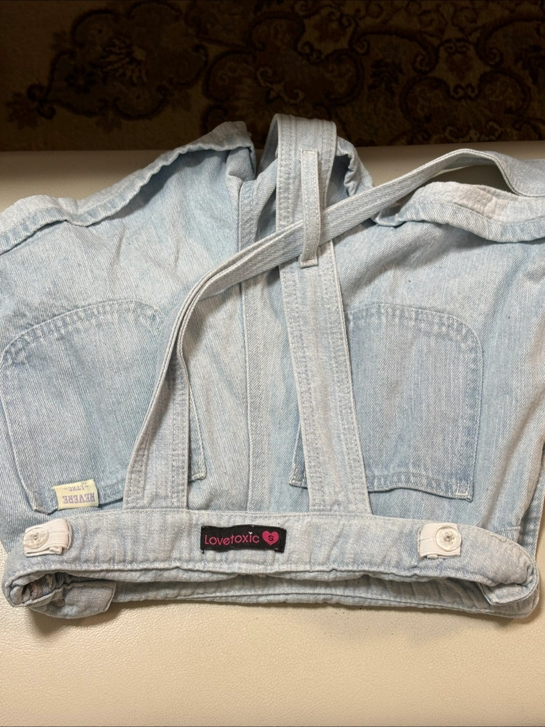人気ブランド「Lovetoxic(ラブトキシック)」のデニムサロペットです。 軽やかな色合いとカジュアルなデザインで、これからの季節にぴったりのアイテムです。胸当て部分とショルダーストラップがしっかりとした作りで、ショートパンツスタイルが動きやすく、元気な印象を与えてくれます。 後ろでクロスされたショルダーストラップは長さ調節が可能です。両サイドにポケットとボタン付き 色:サックス