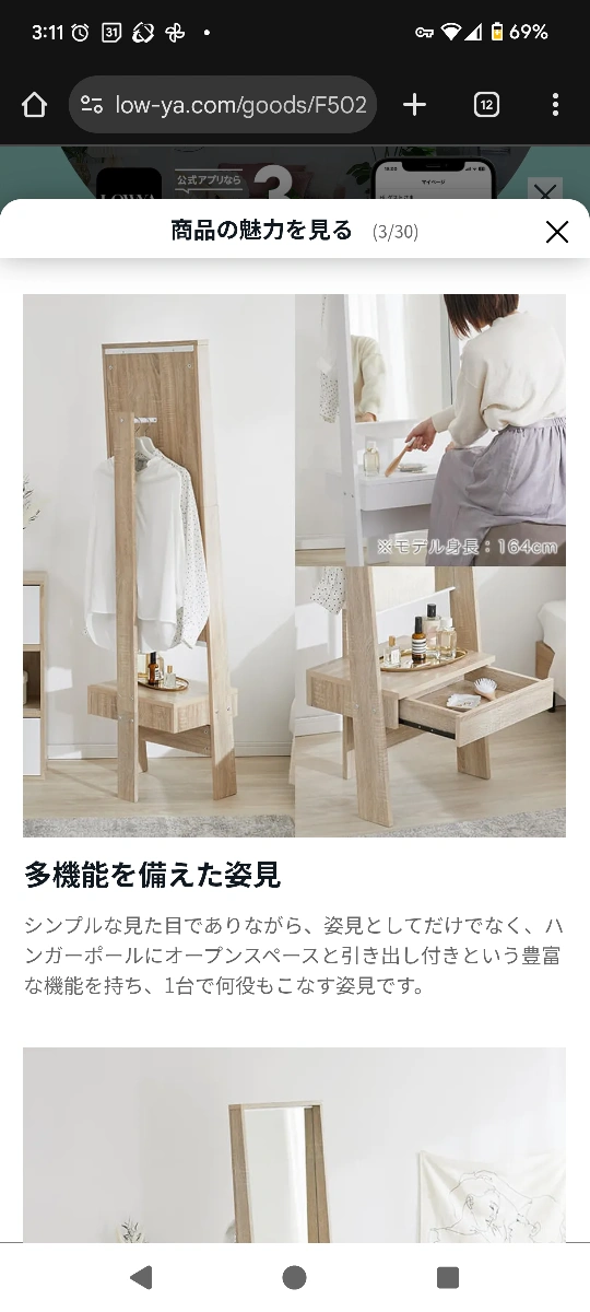 ニトリ キャスター付きスタンドミラー FF3 DBR