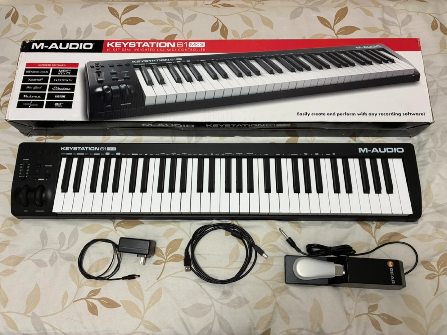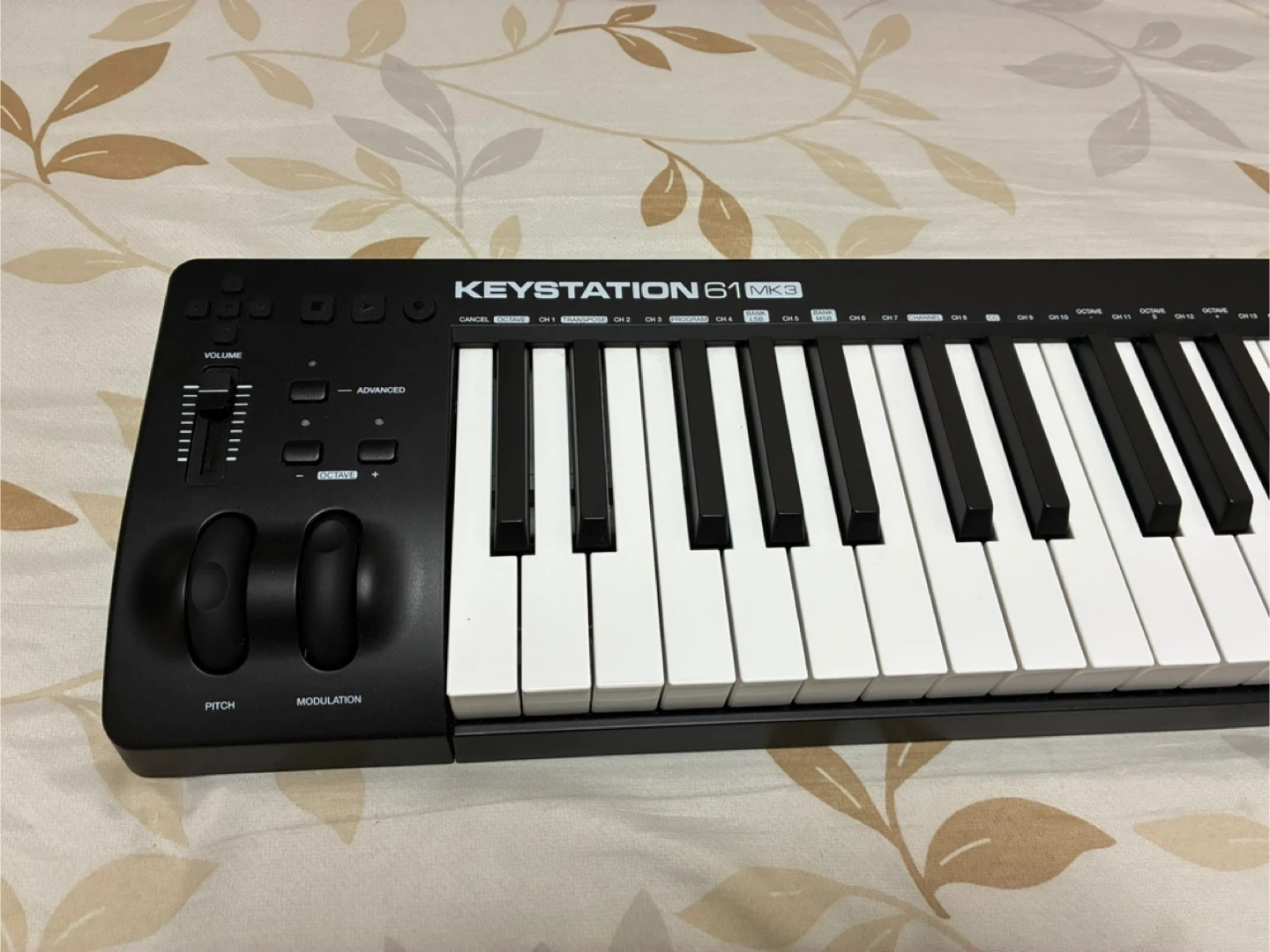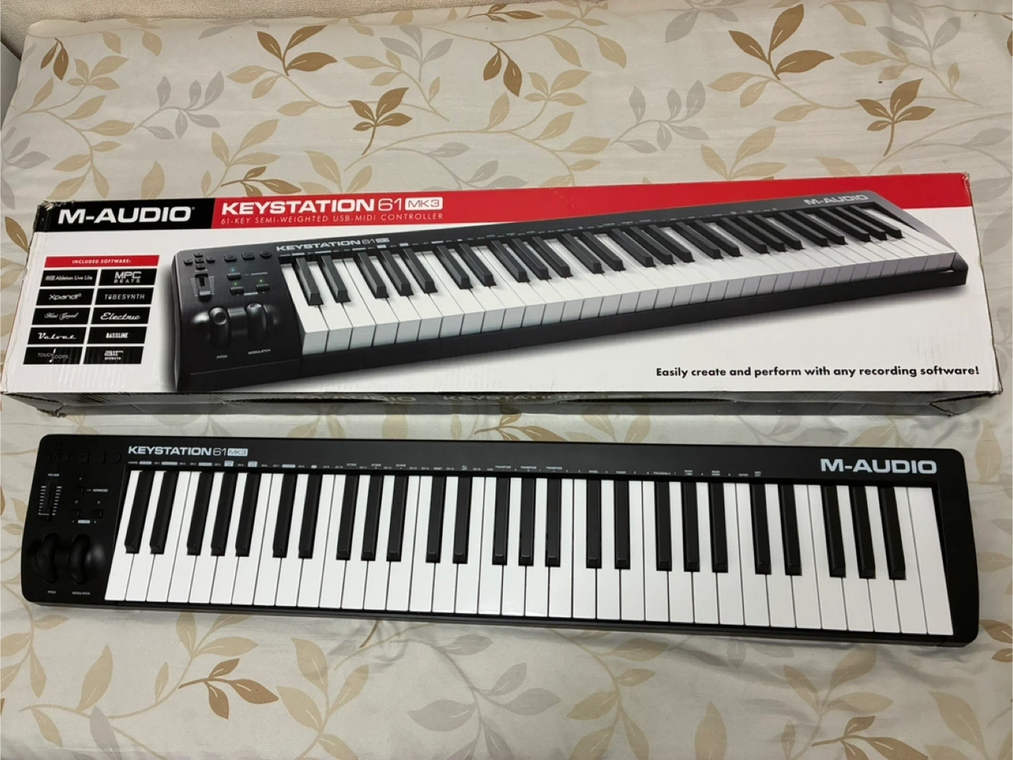 M-AUDIOのMIDIキーボードです 【情報】 ブランド:M-AUDIO モデル:KEYSTATION 61 MK3 種類:MIDIキーボード 【状態】 使用感少なめ、全体的にきれい 【付属品】 箱、電源アダプター、USBケーブル、サスティンペダル、説明書 中古品であることご了承ください