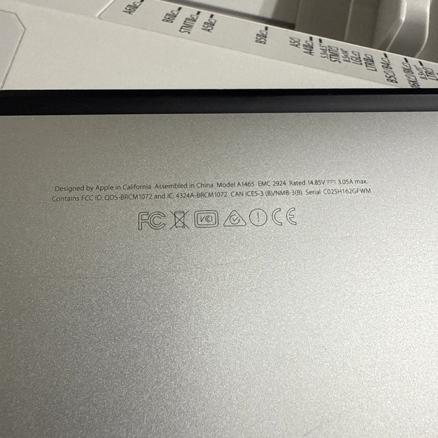 MacBook Air A1465です。 CPU:Core i5 1.3GHz メモリ容量:4GB ストレージ容量:128GB OS: Monterey 12.76 画面サイズ:11.6型 光学ドライブ:無し 無線LAN:有り 画像に写っているものが全てです。 バッテリーが劣化している為、常時ケーブルを接続して使用しておりました。 背面と底面に薄い凹みがございます。 中古品になりますので、ご理解いただける方のみご購入をお願い致します。 シリーズ···Macbook Air Air/モデル···Early 2015 Intel Core i5 ご不明点はお気軽にお問い合わ せください。
