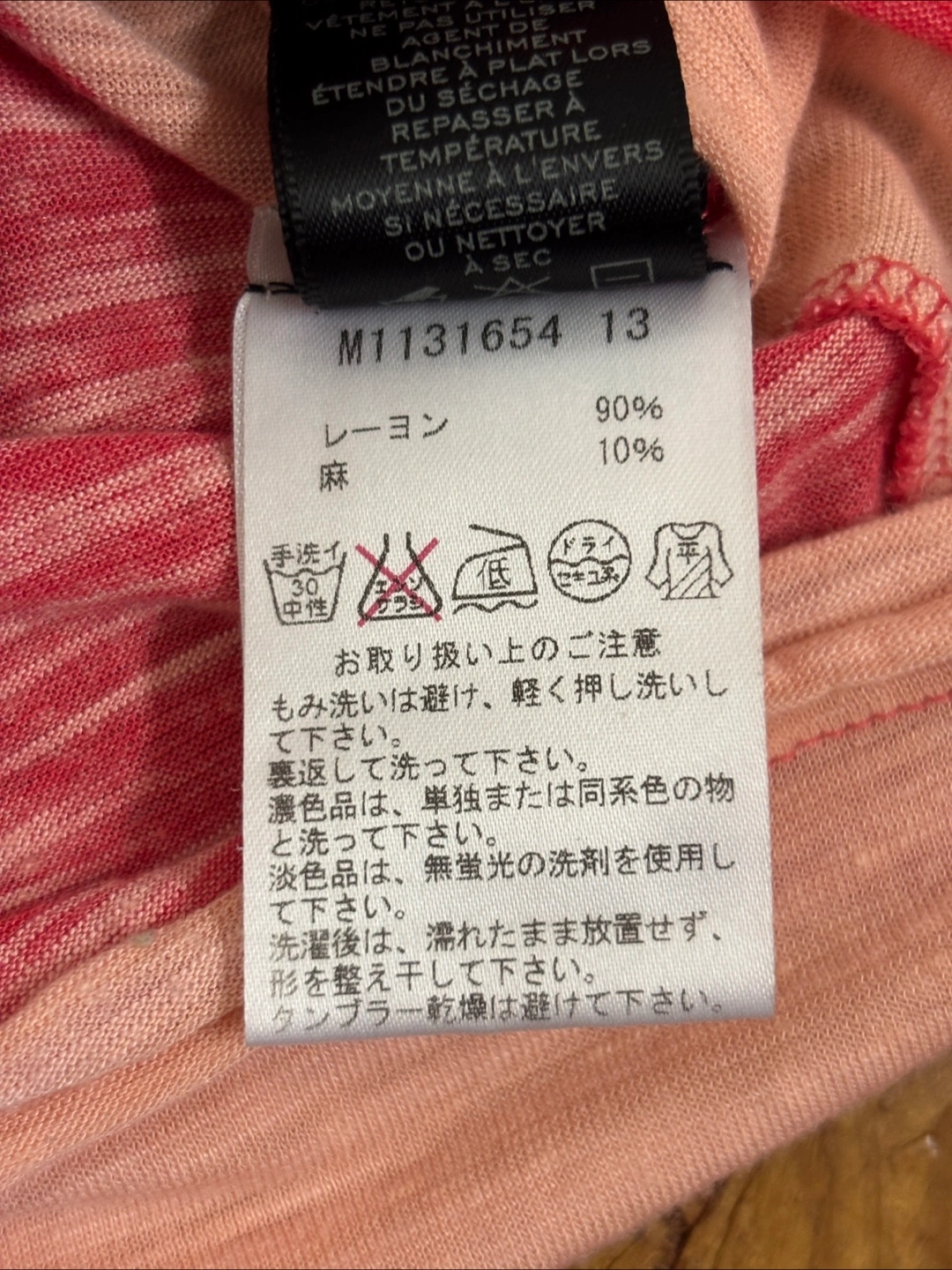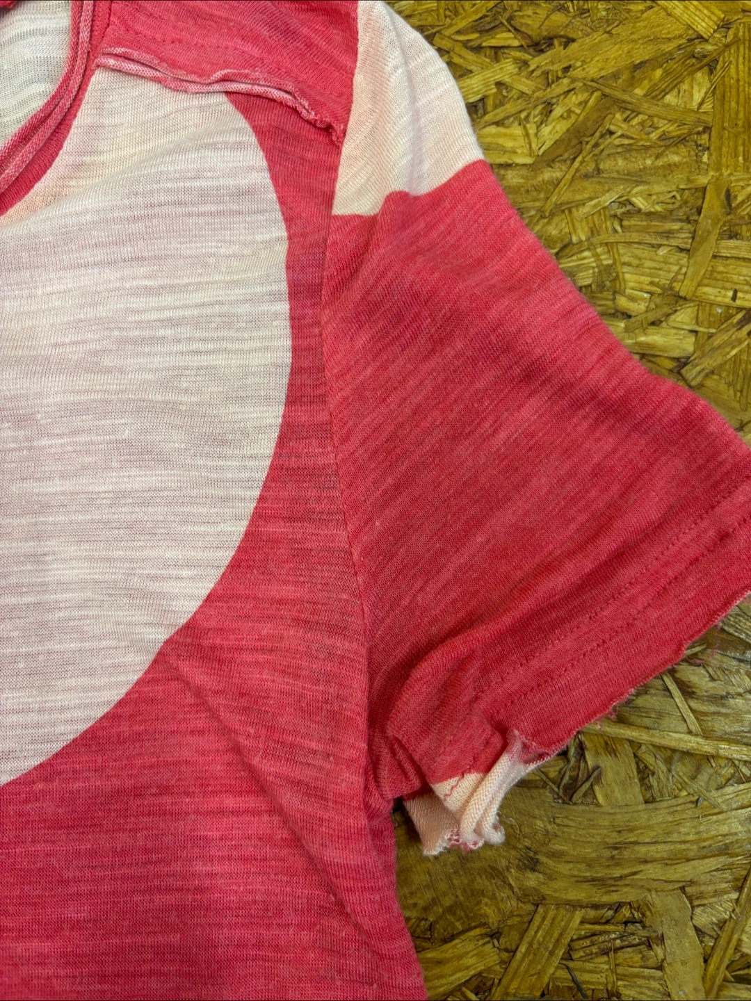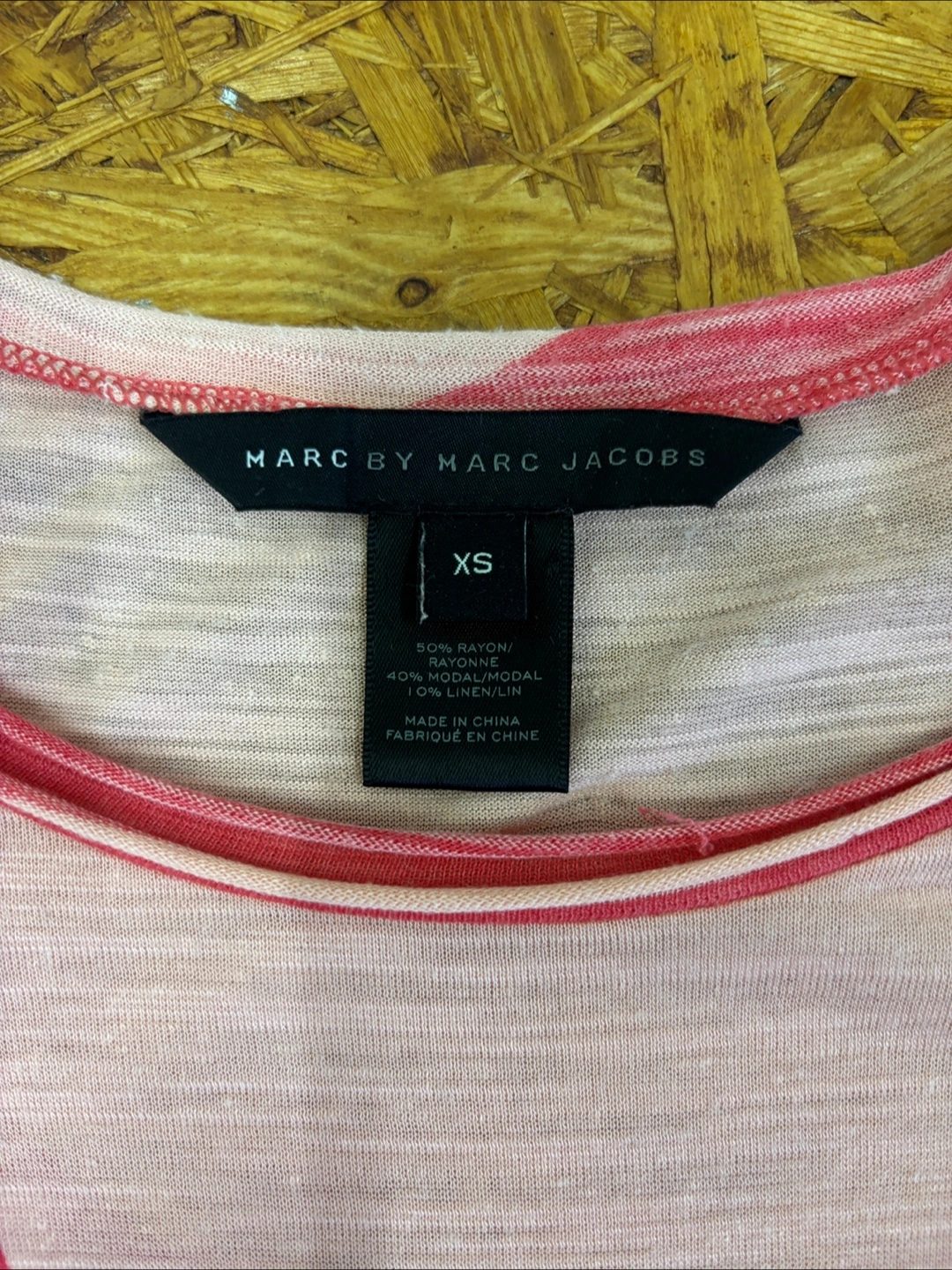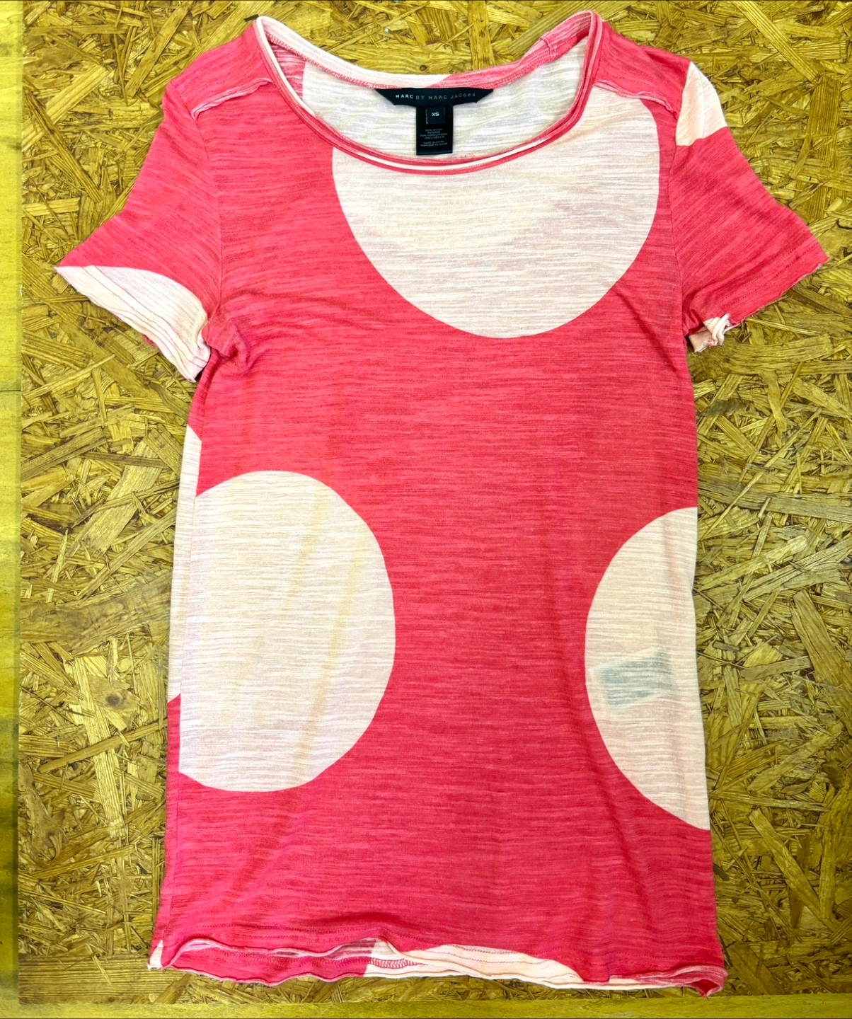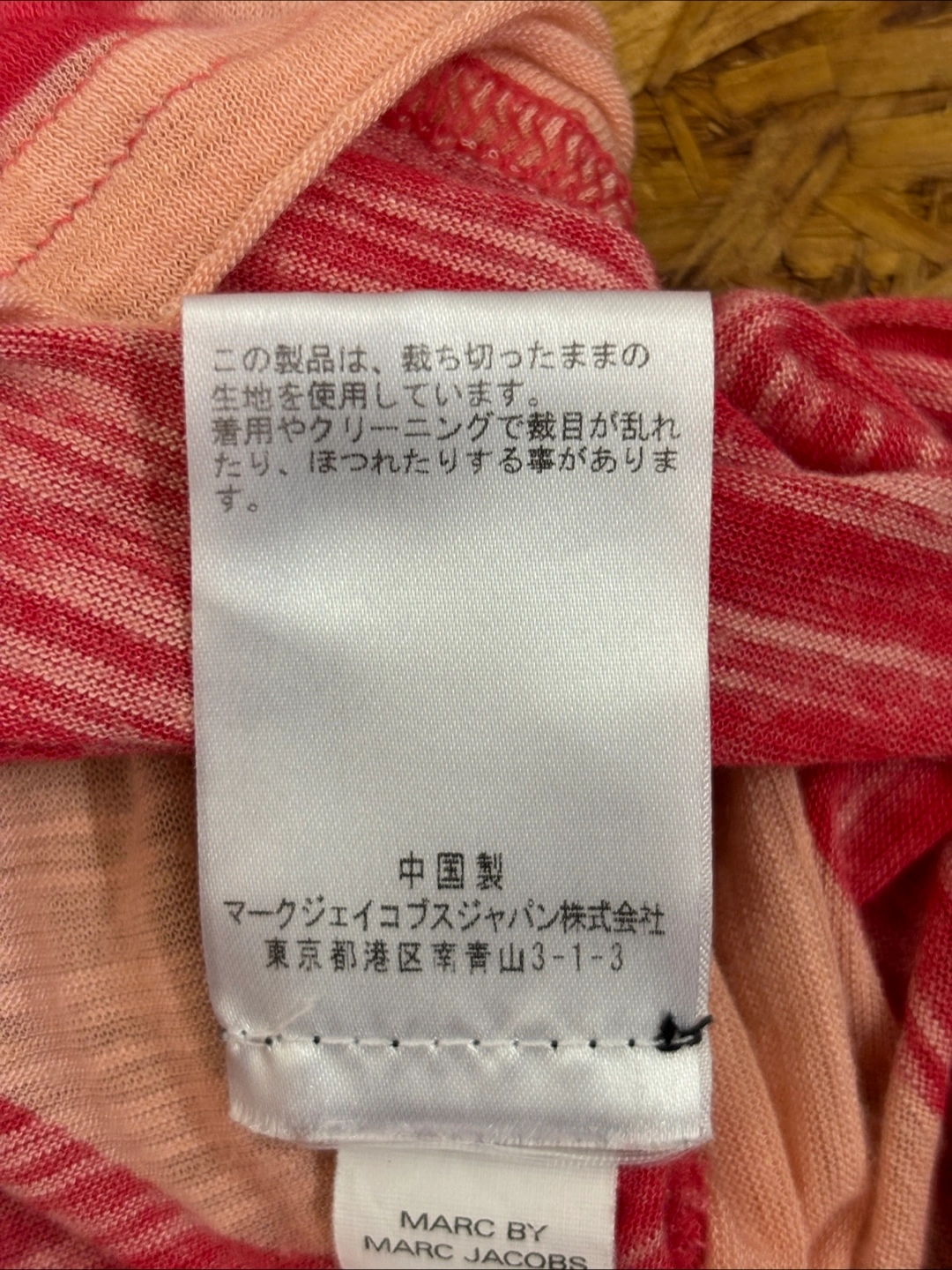 マーク ジェイコブスのドット柄のTシャツです。 タグの画像にありますように、こちらは裁ち切ったままの生地を使用したデザインで、襟、袖、裾がほつれているように見えますが、このようなデザインのものであり、使用によるダメージではありません。 サイズはXS (アメリカサイズ) 伸縮します。 薄ピンクと濃いピンクのツートンカラーです。 中古品ですのでご理解のうえご検討下さい。 お取引場所はこの他、代田橋駅、笹塚駅などご相談下さい。