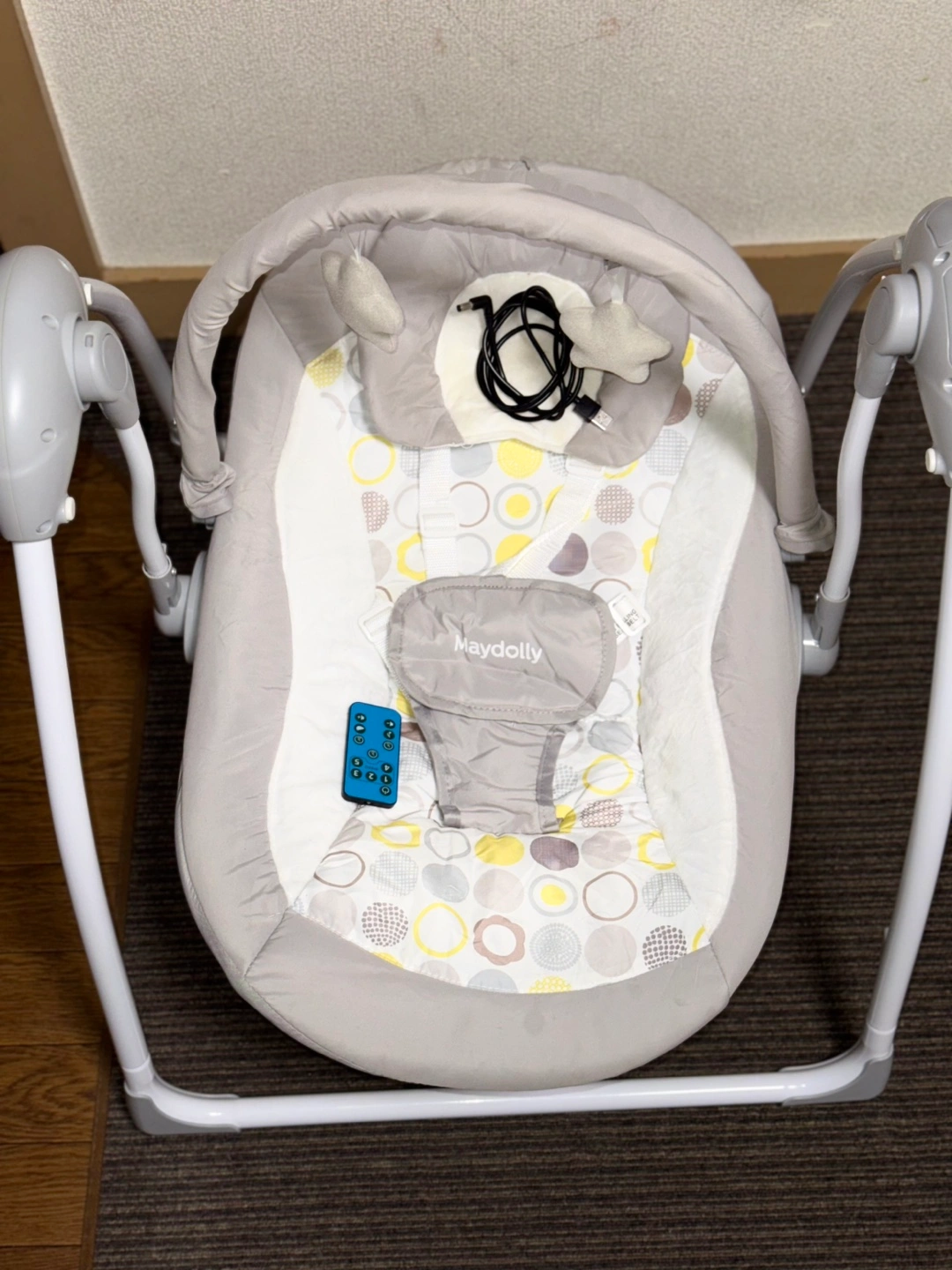 リモコン操作可能なmaydollyのスイングバウンサー、5段階スピード調整と音楽機能付き。 - ブランド: maydolly - 色: グレー・イエロー・ホワイト - 機能: リモコン操作、スイング機能 - リモコン機能: 5段階スピード調整、音楽再生機能 - 操作パネル: LEDインジケーター、スピード調整ボタン ご覧いただきありがとうございます。 0〜1歳までのベビー用になります。 1〜3回しか使っておりません買った金額は2万5000円になりますお値下げ可能です! 電話で音楽とかも楽しむことできます。 なんか聞きたいことがあればお問い合わせお願いします。