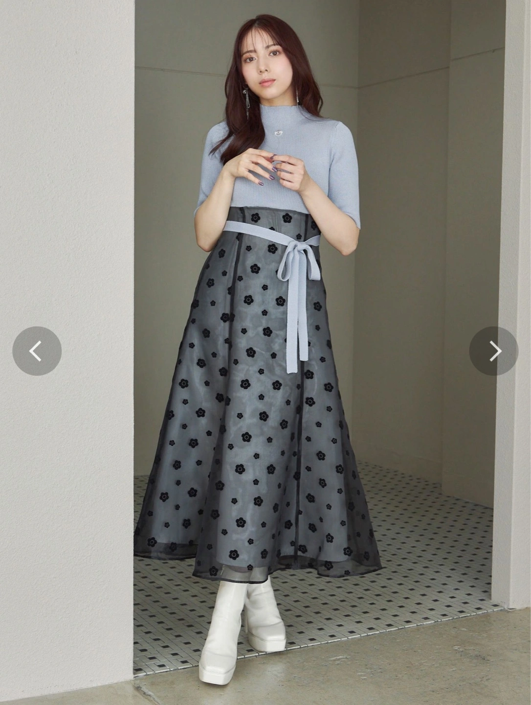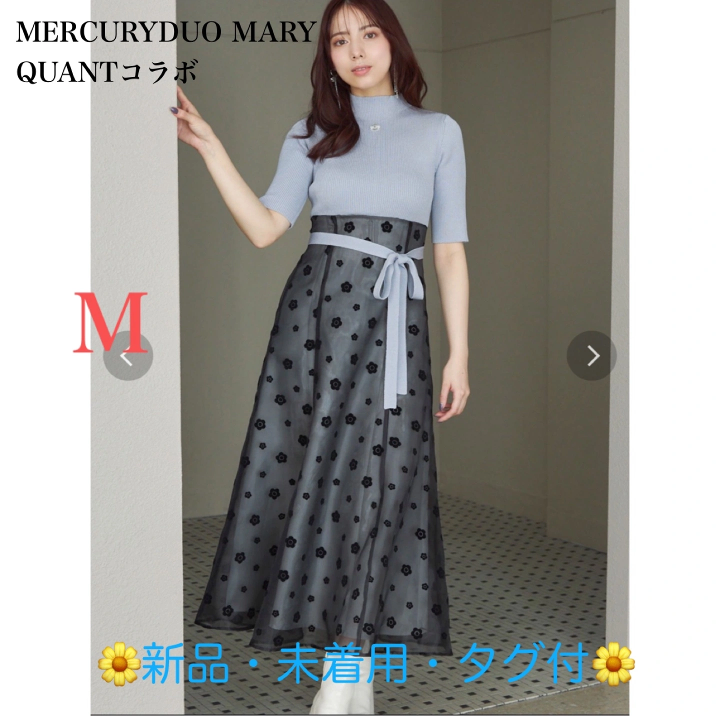 MERCURYDUO 【MARY QUANTコラボ】デイジーフロッキープリントドッキングニットワンピース お色・グレー size・M 【新品・未着用・タグ付き】 *頼まれて購入したのですが、キャンセルされてしまいました。オンラインも完売でしたので、店頭にて代引きで購入しており、送料等諸々掛かってしまっておりますので、このお値段でのお譲りになってしまいます。ご了承頂ける方のみご購入宜しくお願い致します。 MEDIUM(Mサイズ相当) 身幅:33/肩幅:29/着丈:127/そで丈:29/ ウエスト:68 「MARY QUANT」のアイコンであるデイジーモチーフを生地にフロッキープリントを施して仕立てたニットドッキングワンピース。 デコルテ部分にもデイジーモチーフの刺繍を施しました。 ランダムに飛ばしたデイジーの刺繍は、華やかさを演出。 ハイウエスト切り替えなので、腰回りは身体に沿うように、スタイルアップシルエットを目指してデザインしました。
