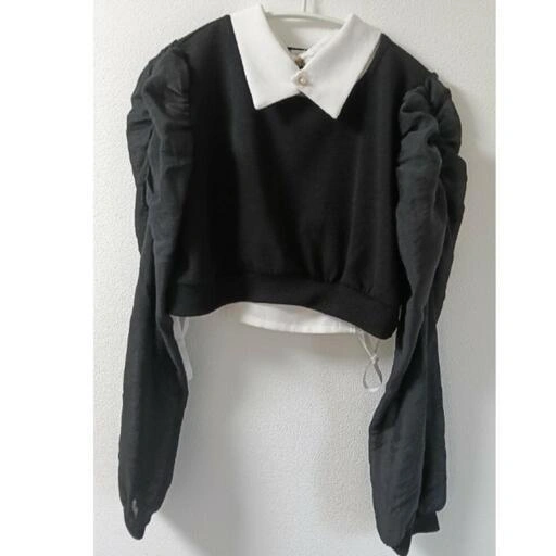 【milybilet】ギャザースリーブショート丈トップス&付け襟セット