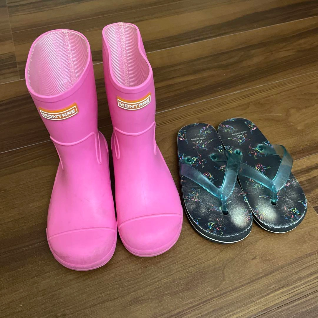 MONTRRE ピンク 長靴 と、恐竜柄サンダル